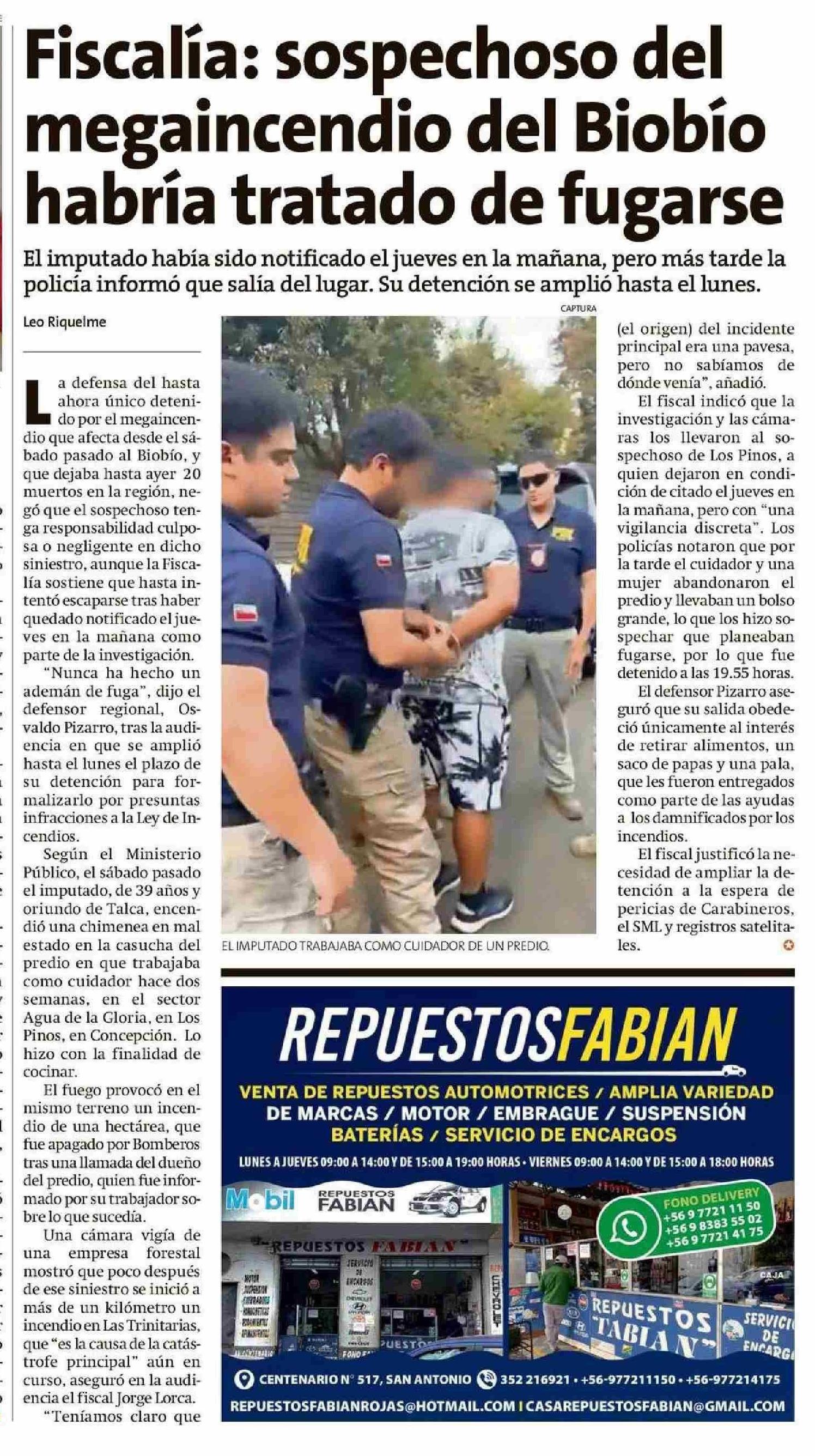 Fiscalía: sospechoso del megaincendio del Biobio habría tratado de fugarse