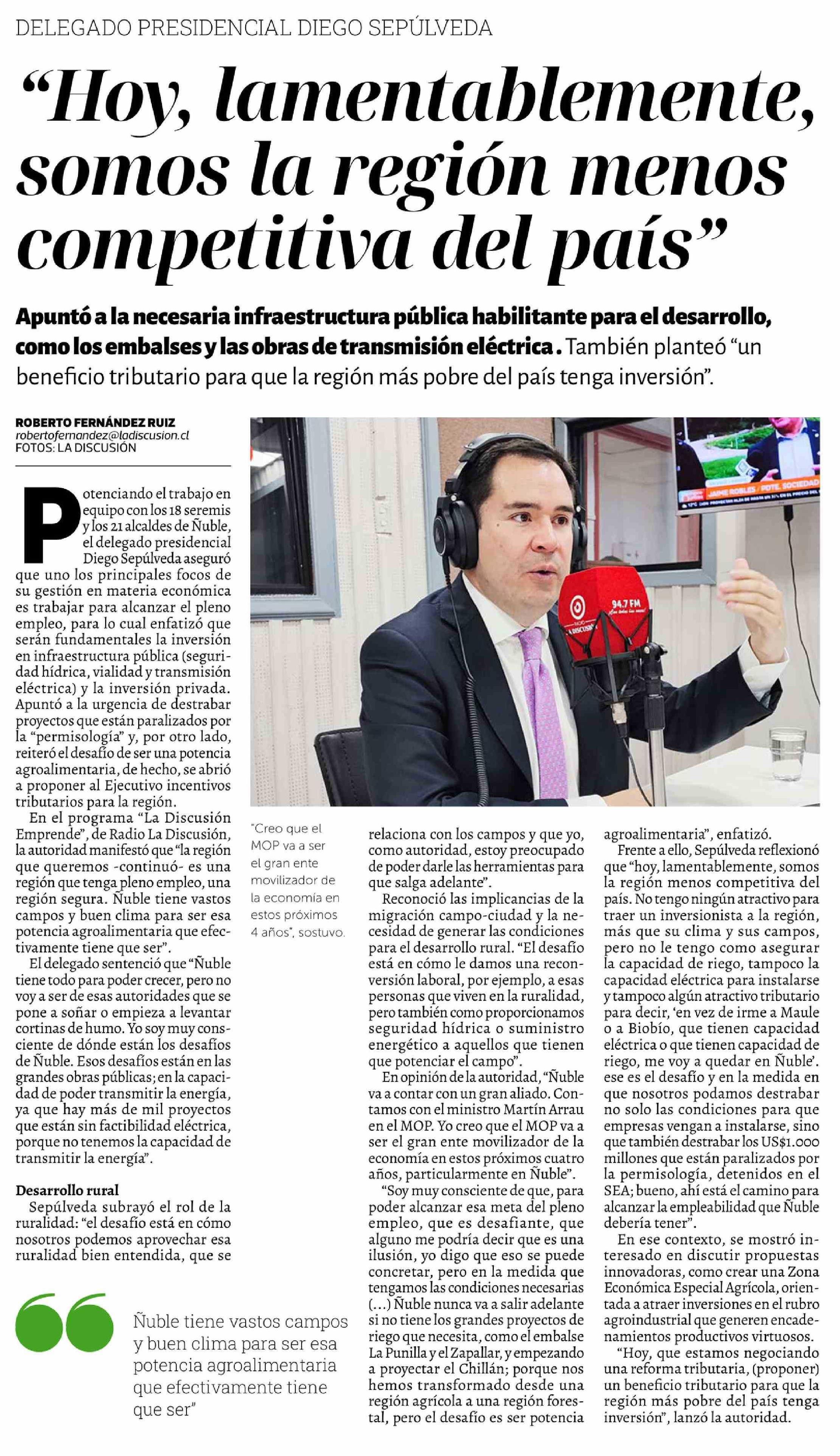 "Hoy, lamentablemente, somos la región menos competitiva del país"
