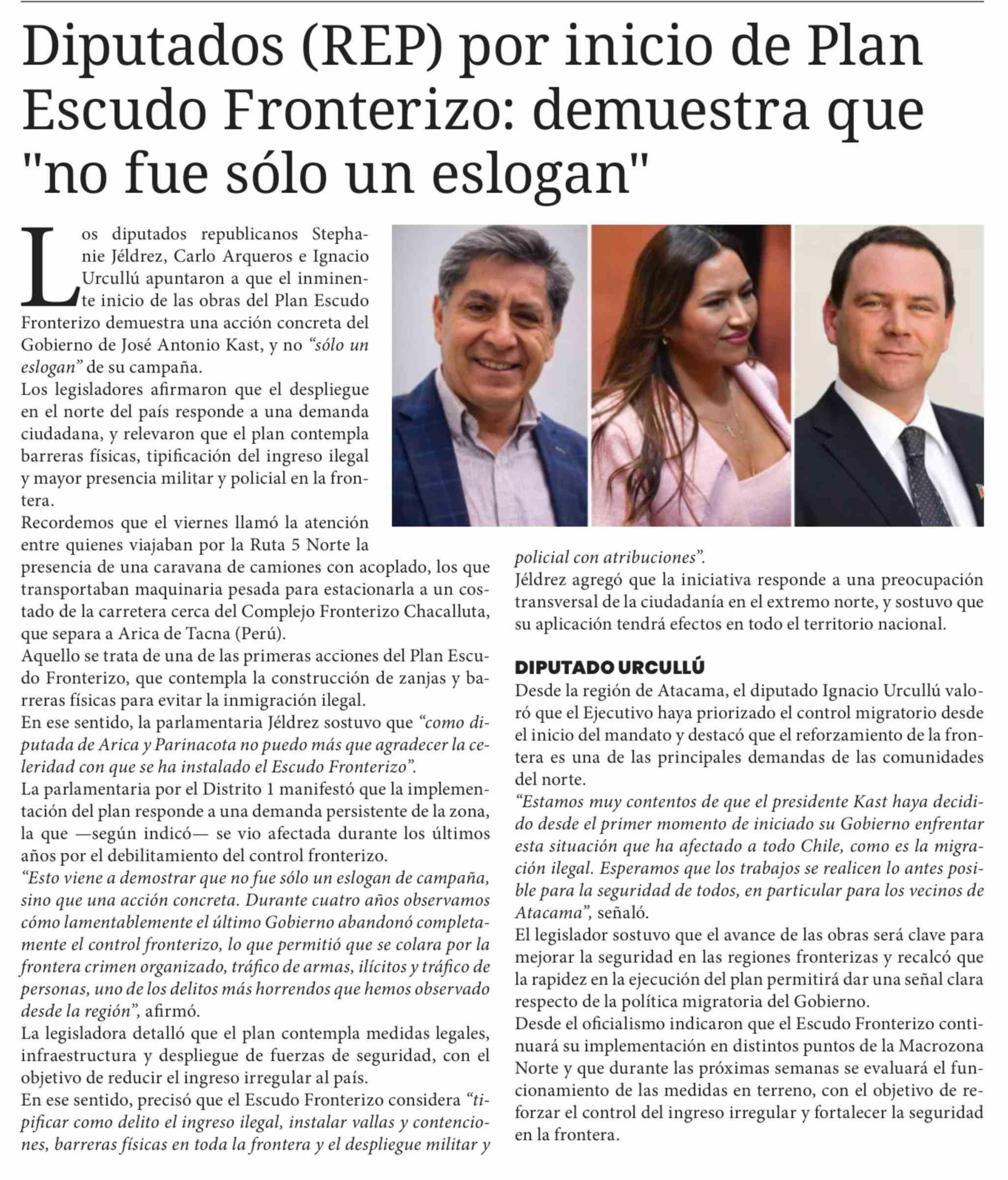 Diputados (REP) por inicio de Plan Escudo Fronterizo: demuestra que "no fue sólo un eslogan"