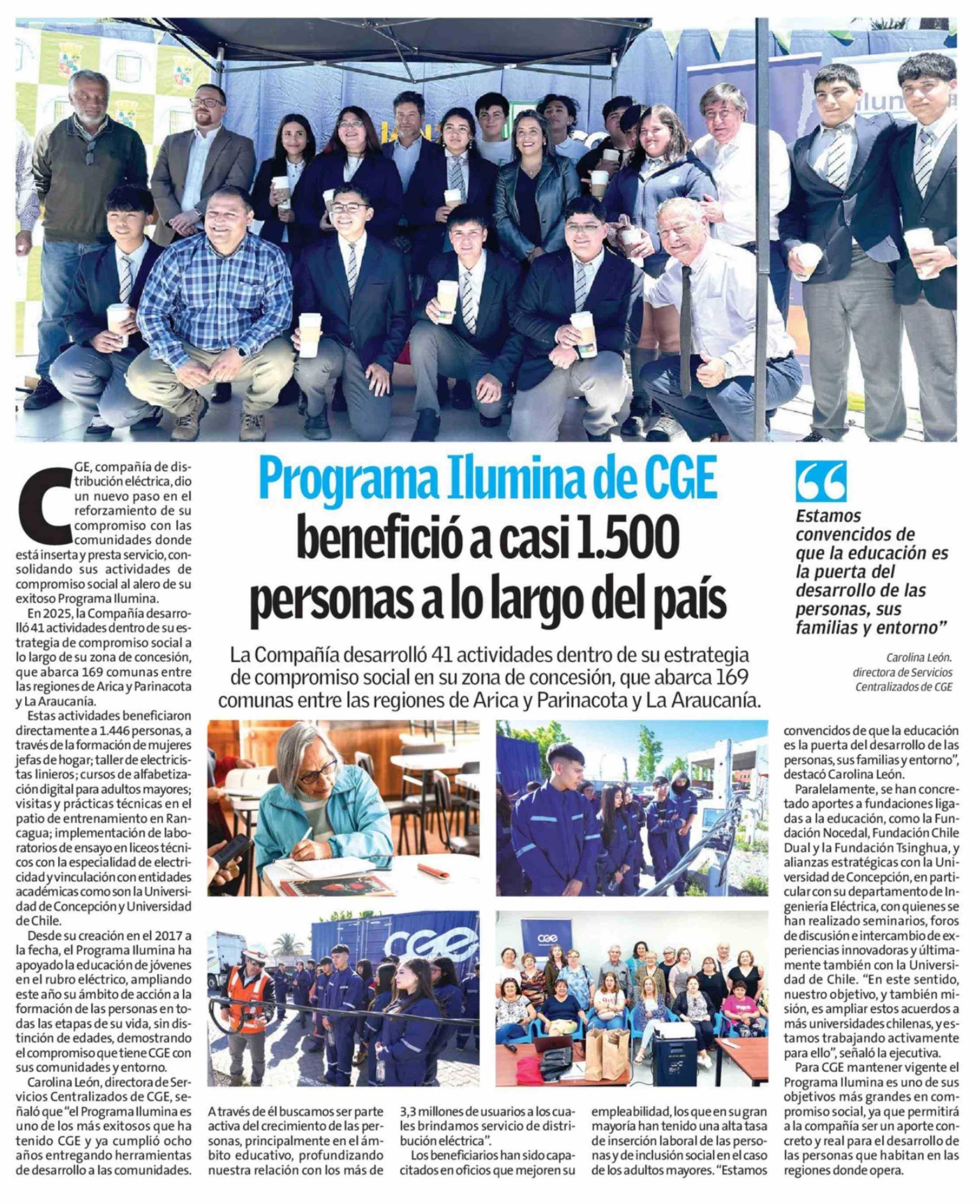 Programa Ilumina de CGE benefició a casi 1.500 personas a lo largo del país