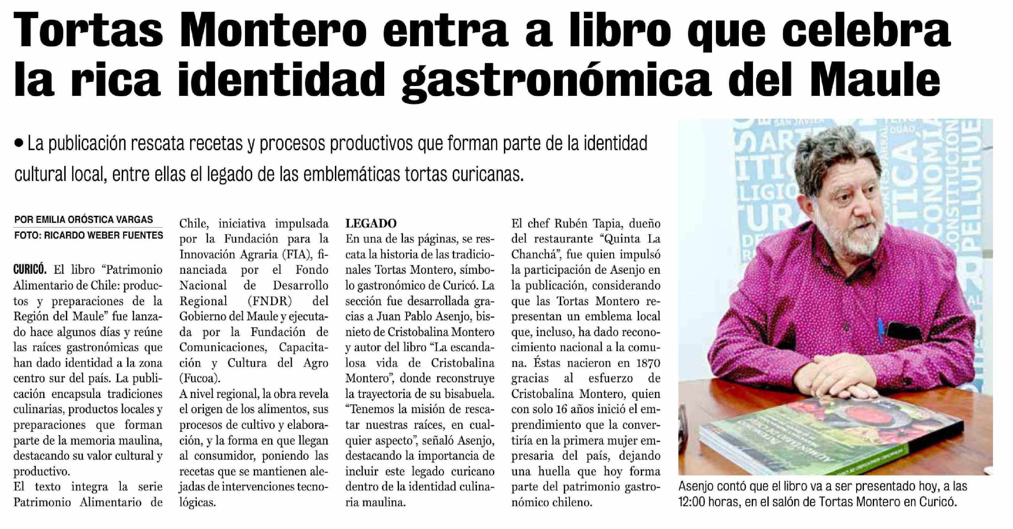 Tortas Montero entra a libro que celebra la rica identidad gastronómica del Maule