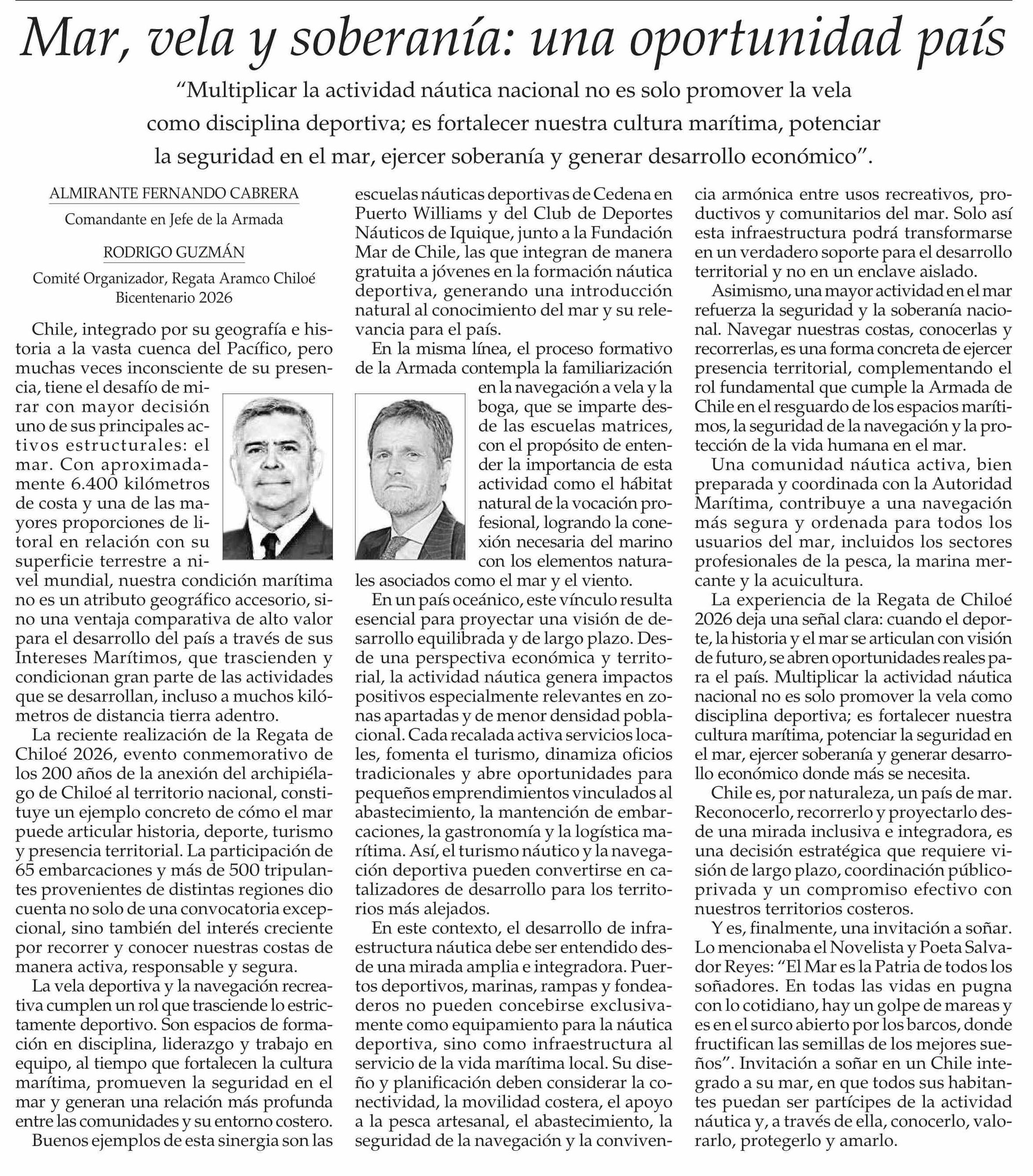 Título: Columnas de Opinión: Mar, vela y soberanía: una oportunidad país