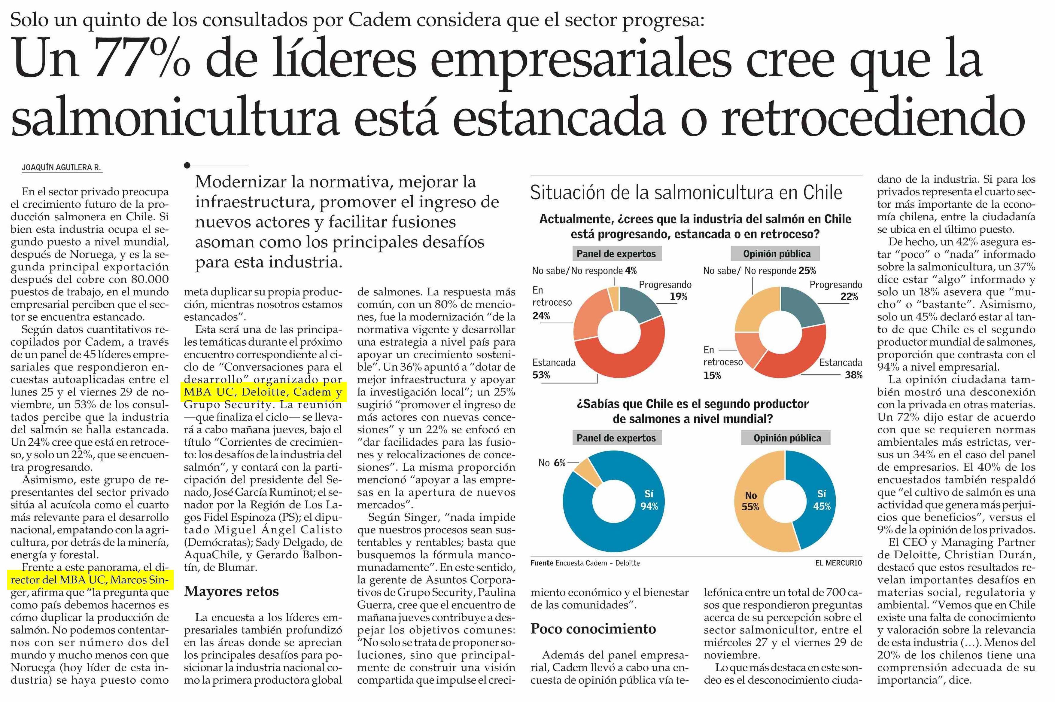 Un 77% de líderes empresariales cree que la salmonicultura está estancada o retrocediendo