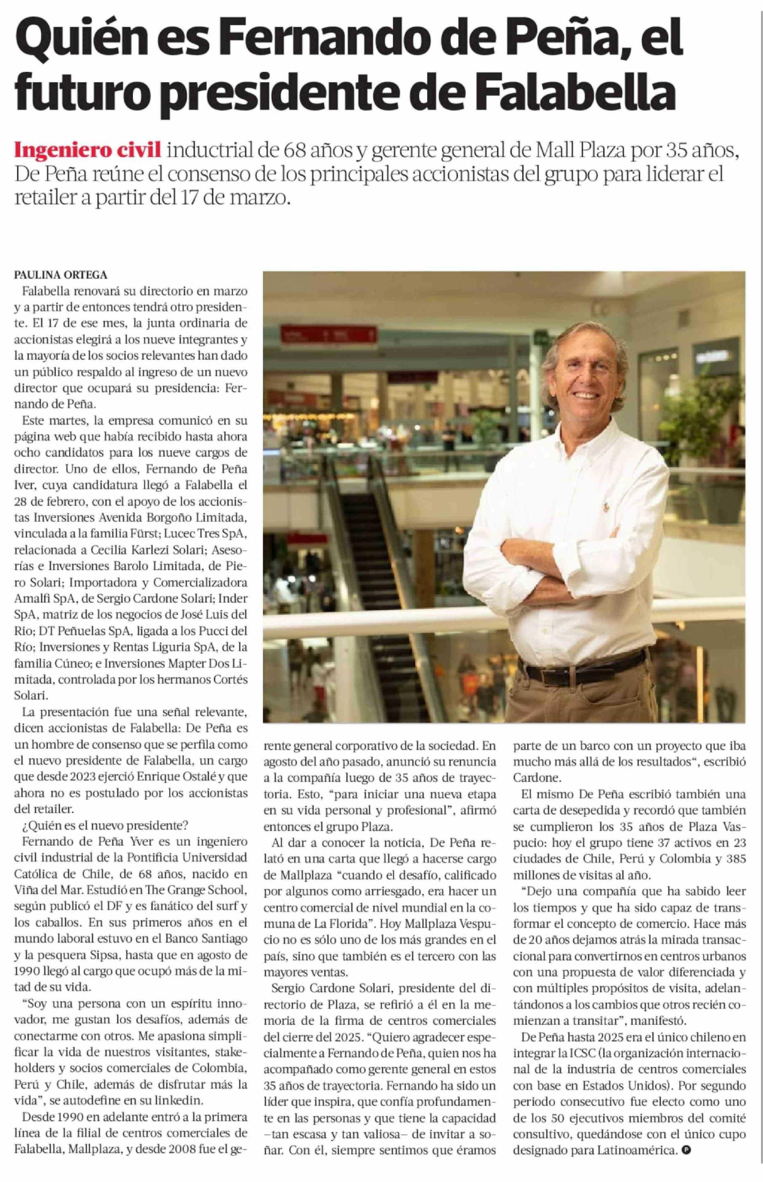 Título: Quién es Fernando de Peña, el futuro presidente de Falabella