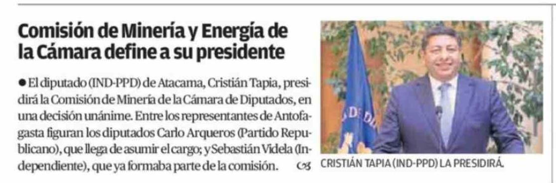 Comisión de Minería y Energía de la Cámara define a su presidente