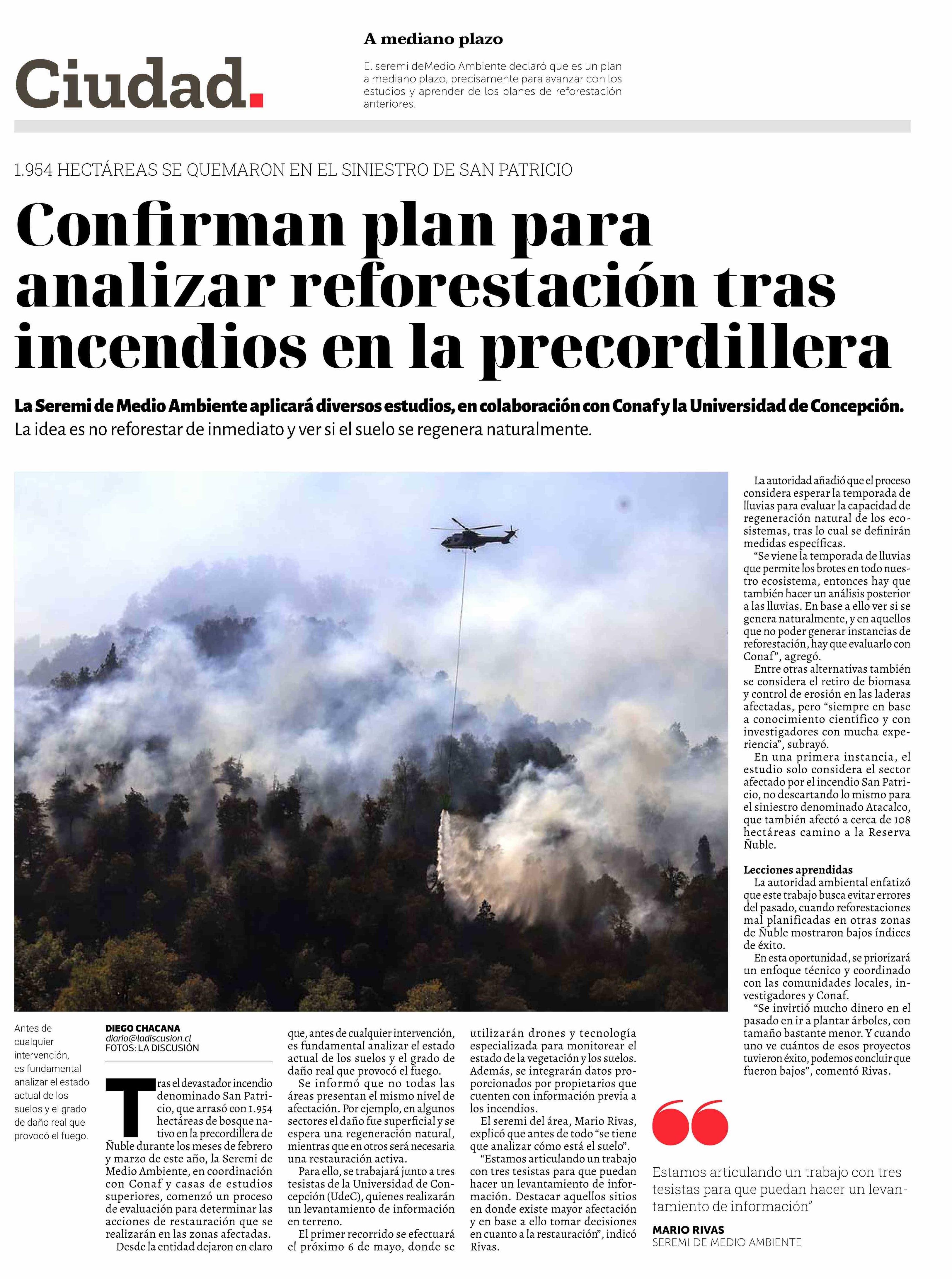 Confirman plan para analizar reforestación tras incendios en la precordillera