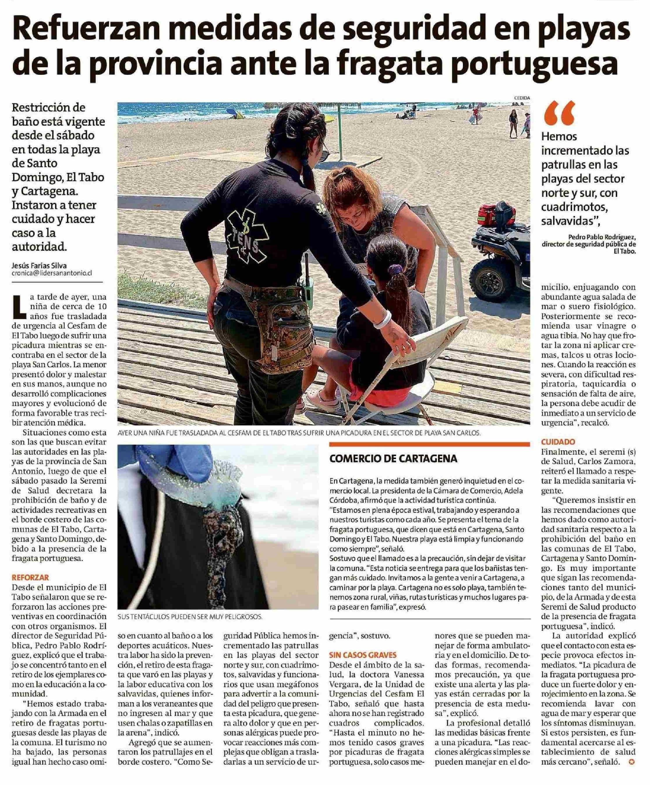 Refuerzan medidas de seguridad en playas de la provincia ante la fragata portuguesa