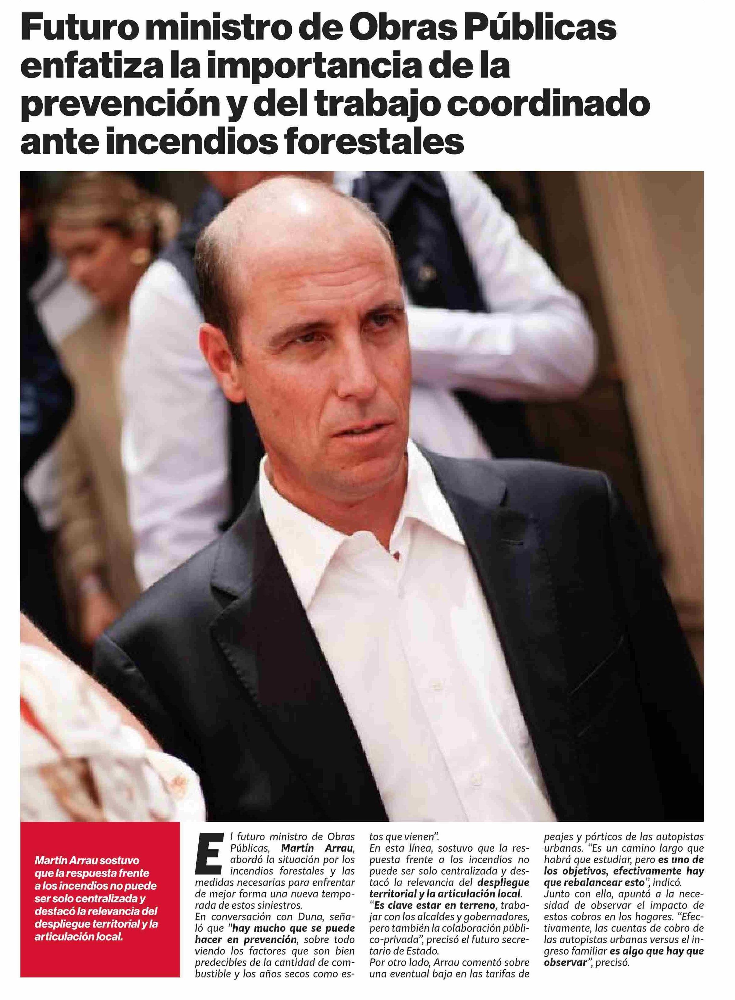Futuro ministro de Obras Públicas enfatiza la importancia de la prevención y del trabajo coordinado ante incendios forestales