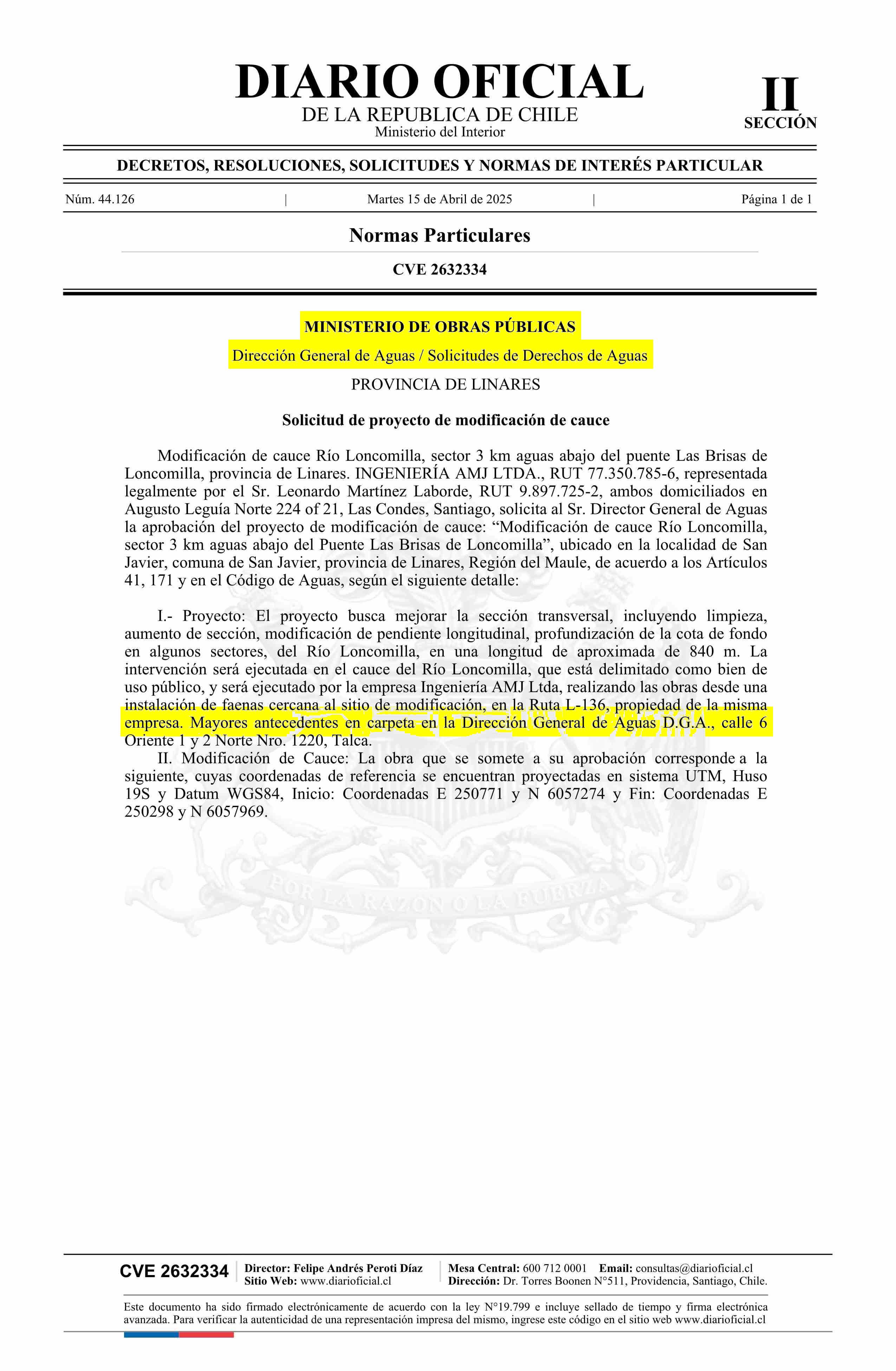 Diario Oficial Edición Electrónica (Diario Oficial de Chile - 2 Normas Particulares)