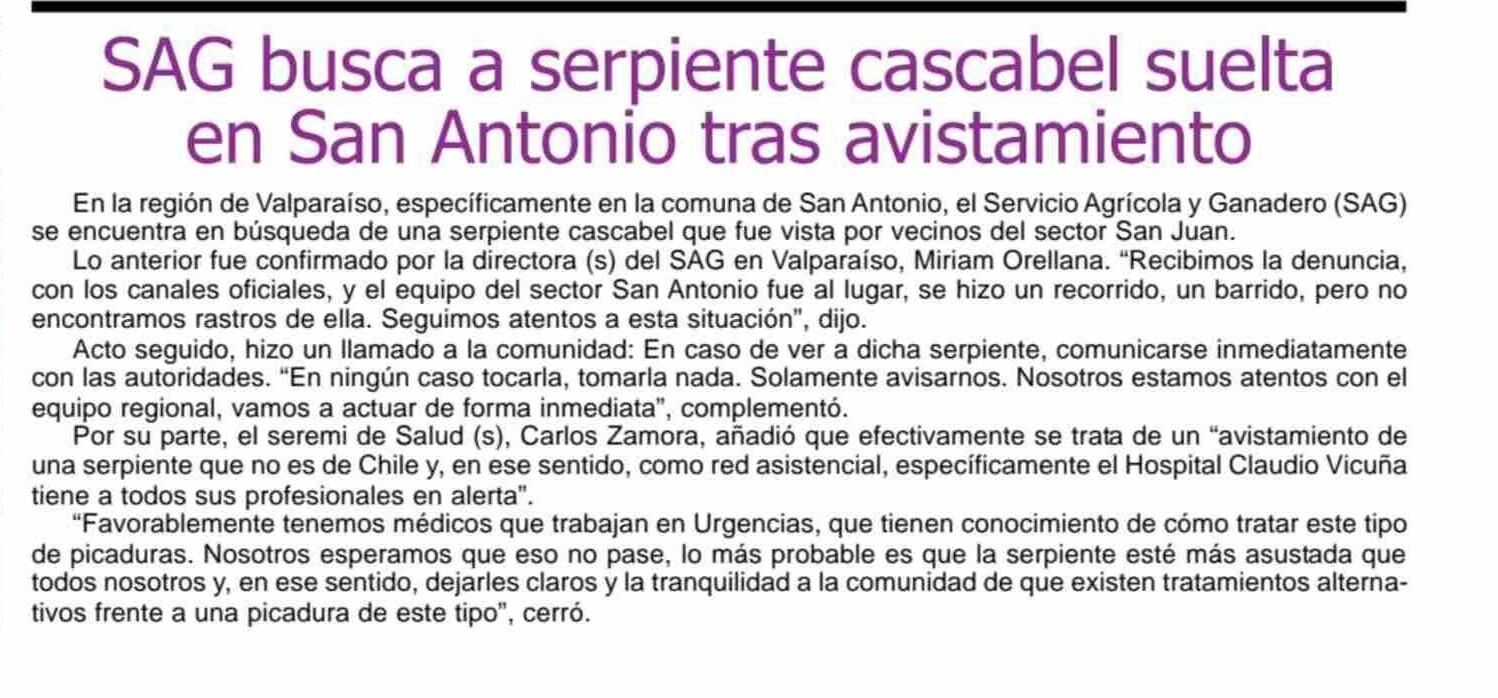 SAG busca a serpiente cascabel suelta en San Antonio tras avistamiento