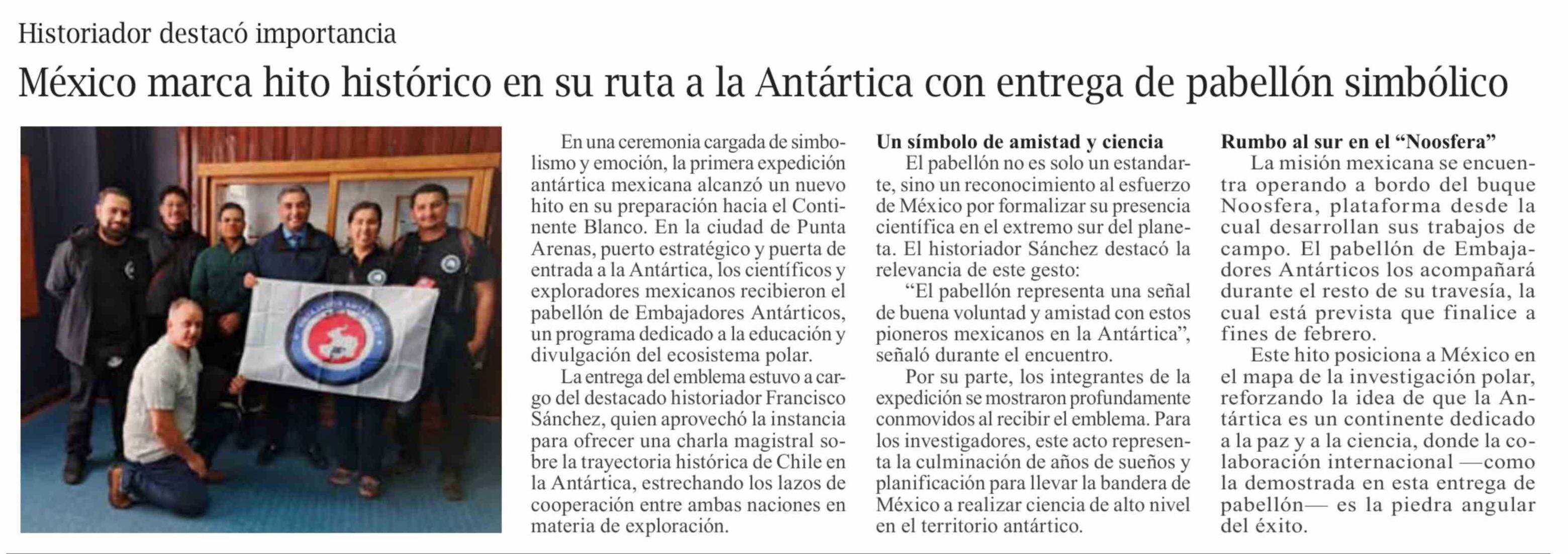 México marca hito histórico en su ruta a la Antártica con entrega de pabellón simbólico
