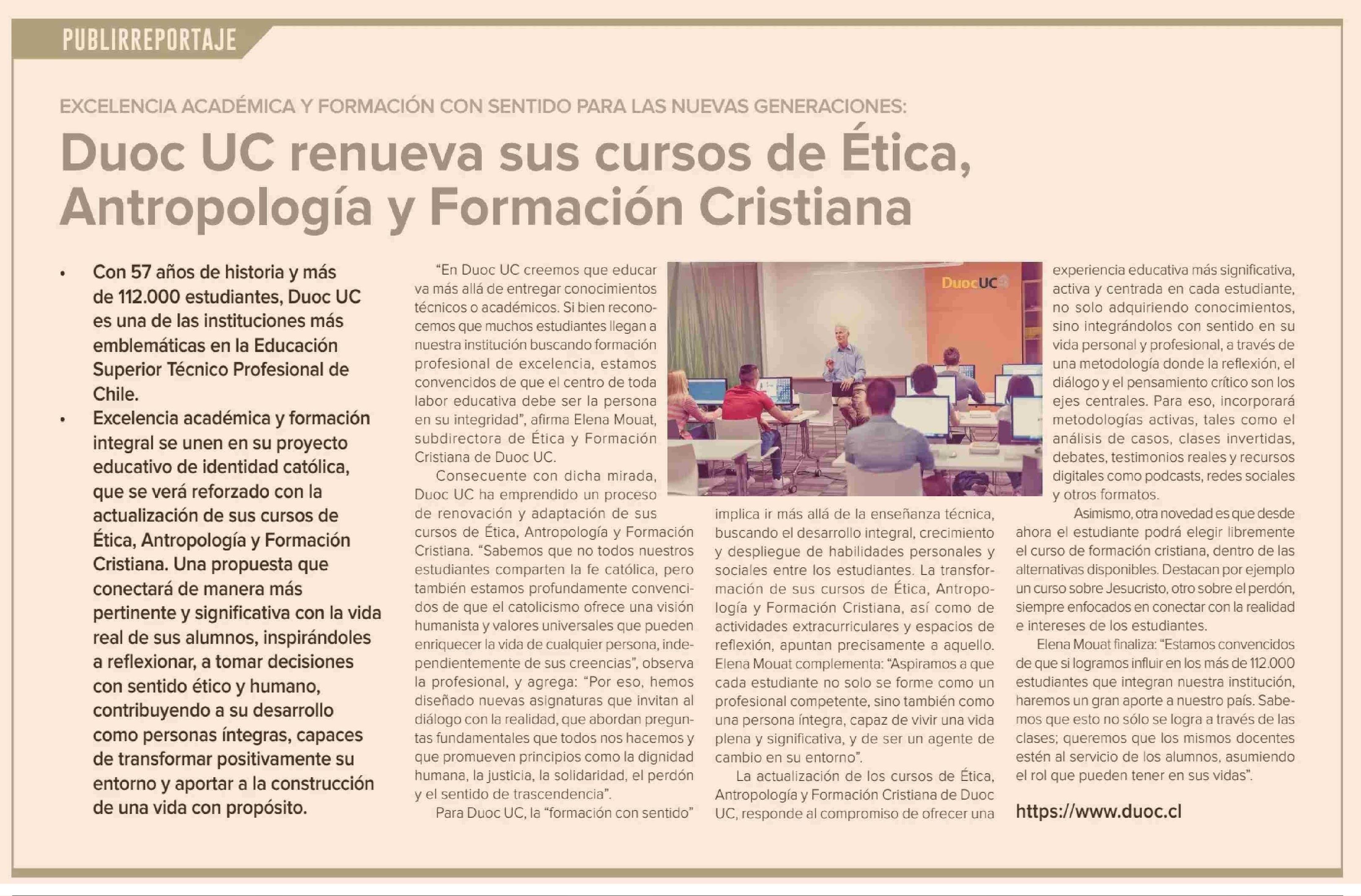 Duoc UC renueva sus cursos de Ética, Antropología y Formación Cristiana