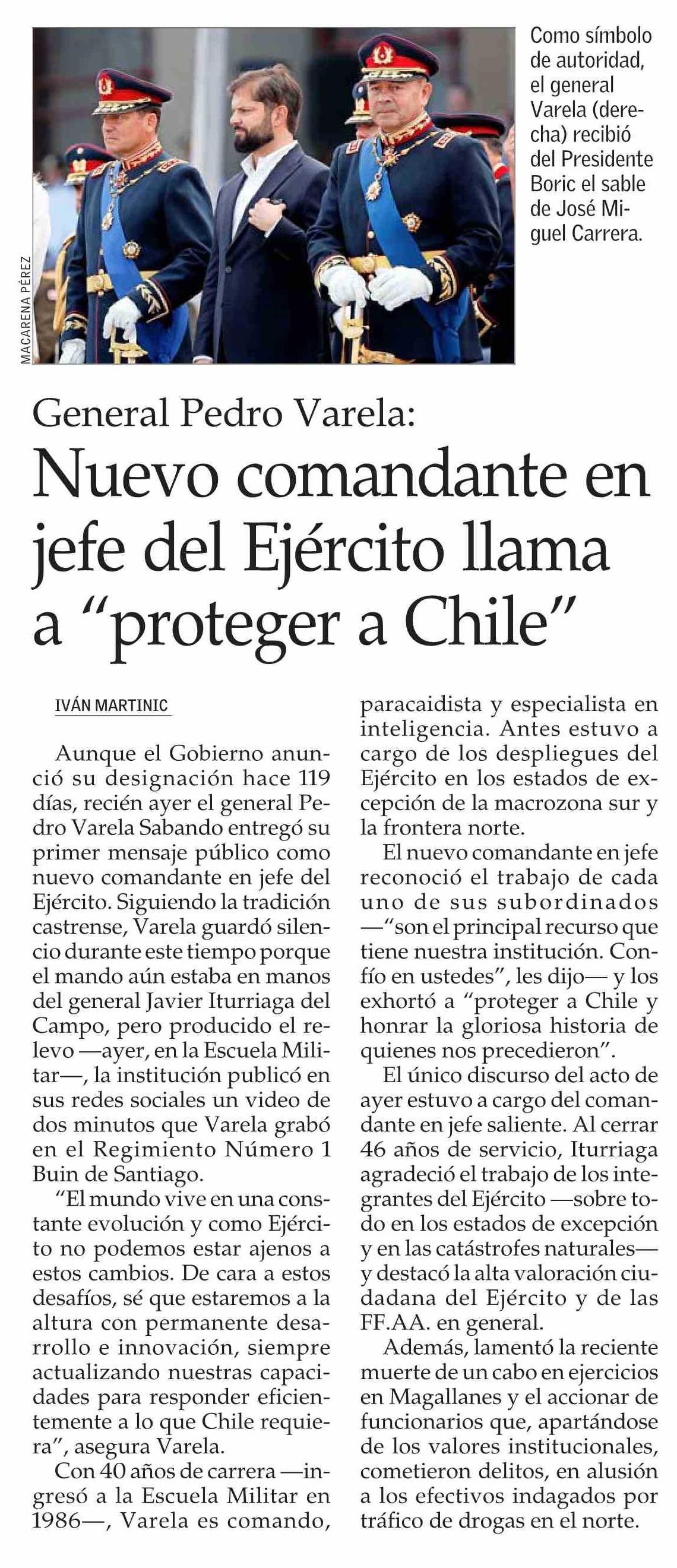 Nuevo comandante en jefe del Ejército llama a “proteger a Chile”