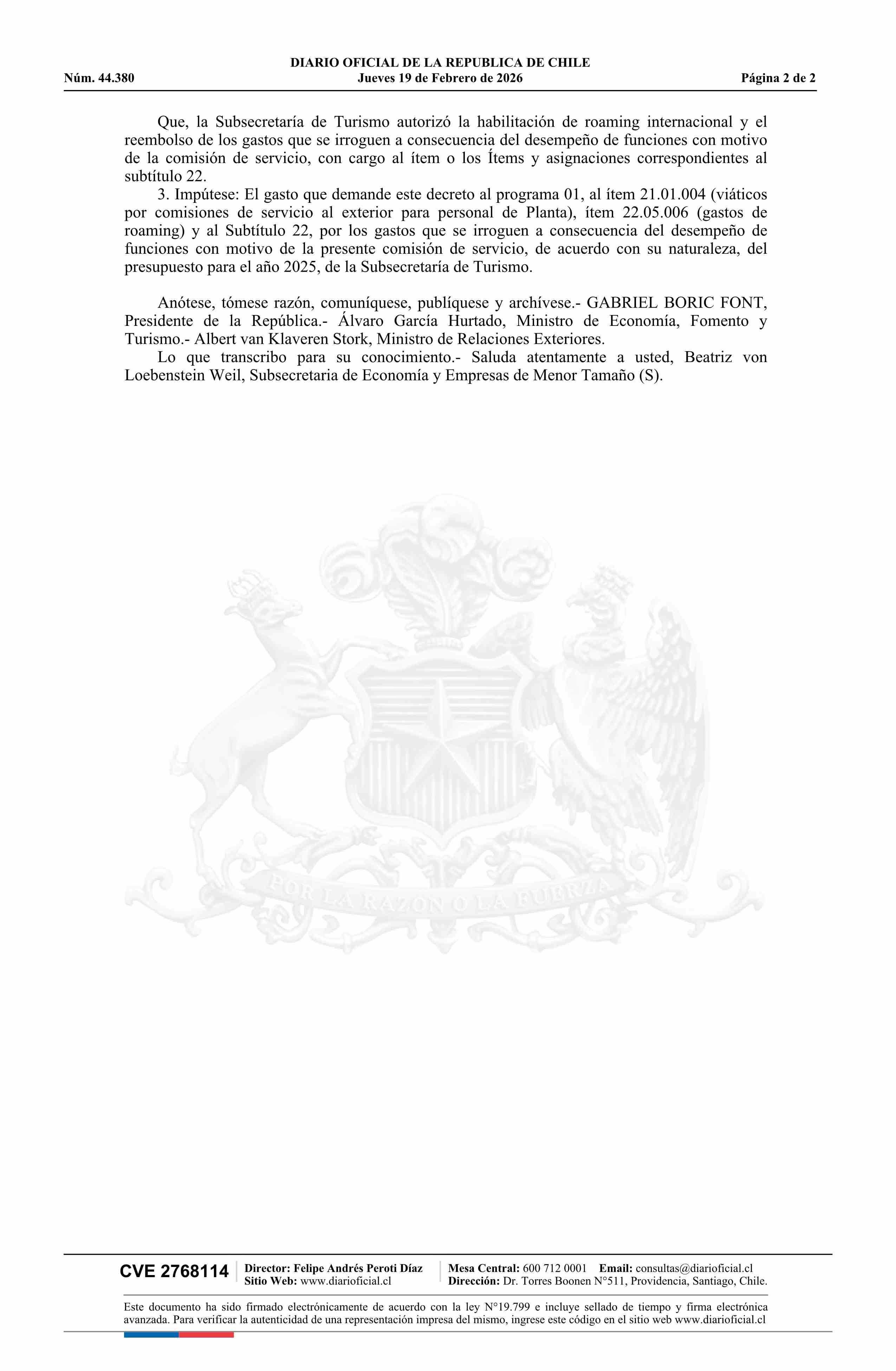 | Fuente: | Diario Oficial Edición Electrónica (Diario Oficial de Chile - 1 Normas Generales) | Página(s): | 7-8 |