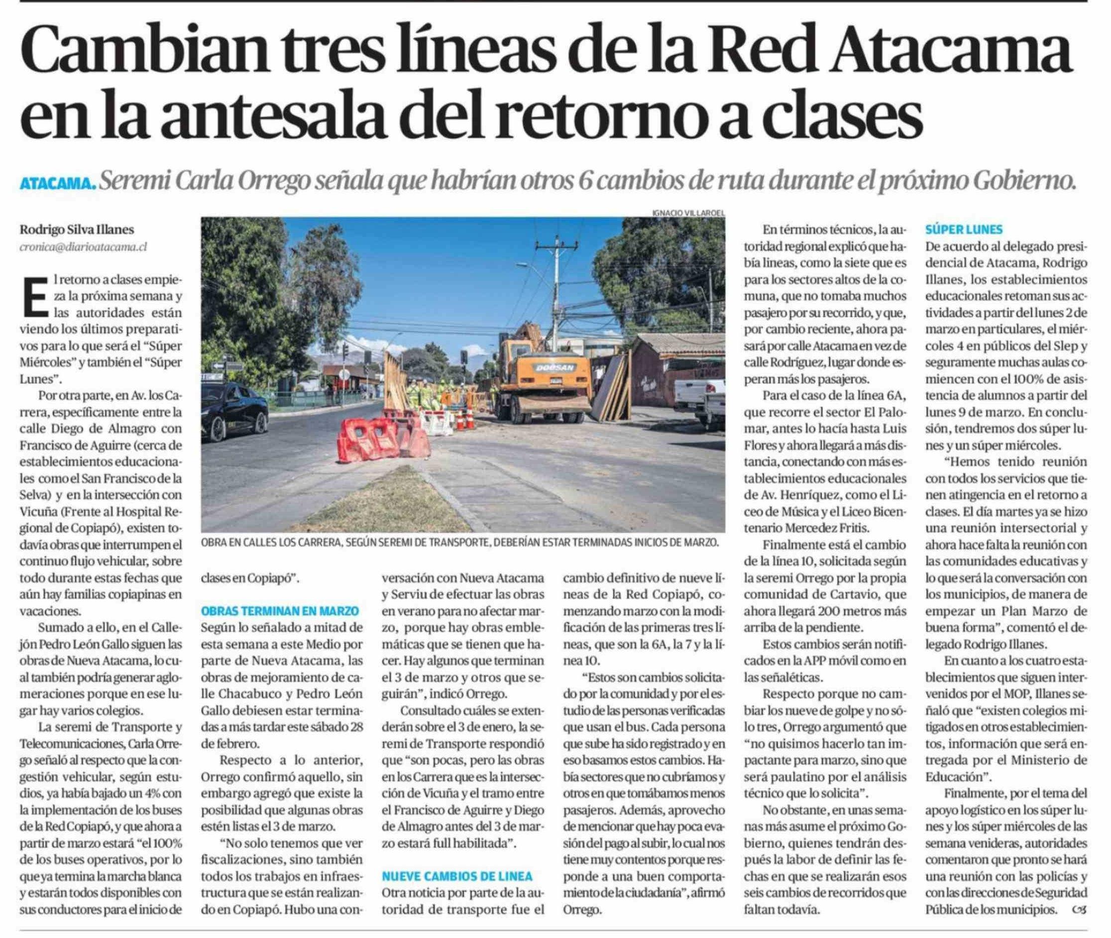 Cambian tres líneas de la Red Atacama en la antesala del retorno a clases