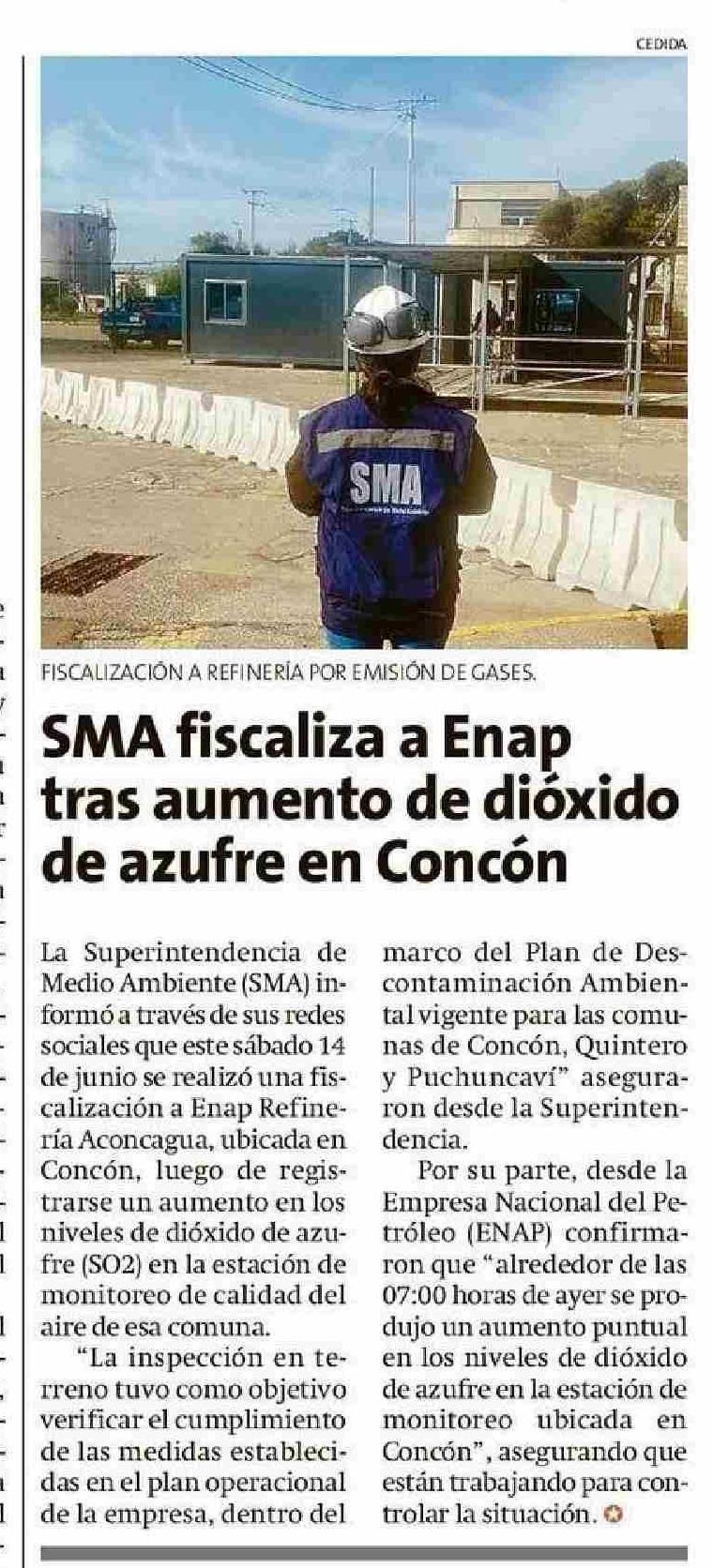 SMA fiscaliza a Enap de azufre en Concón tras aumento de dióxido