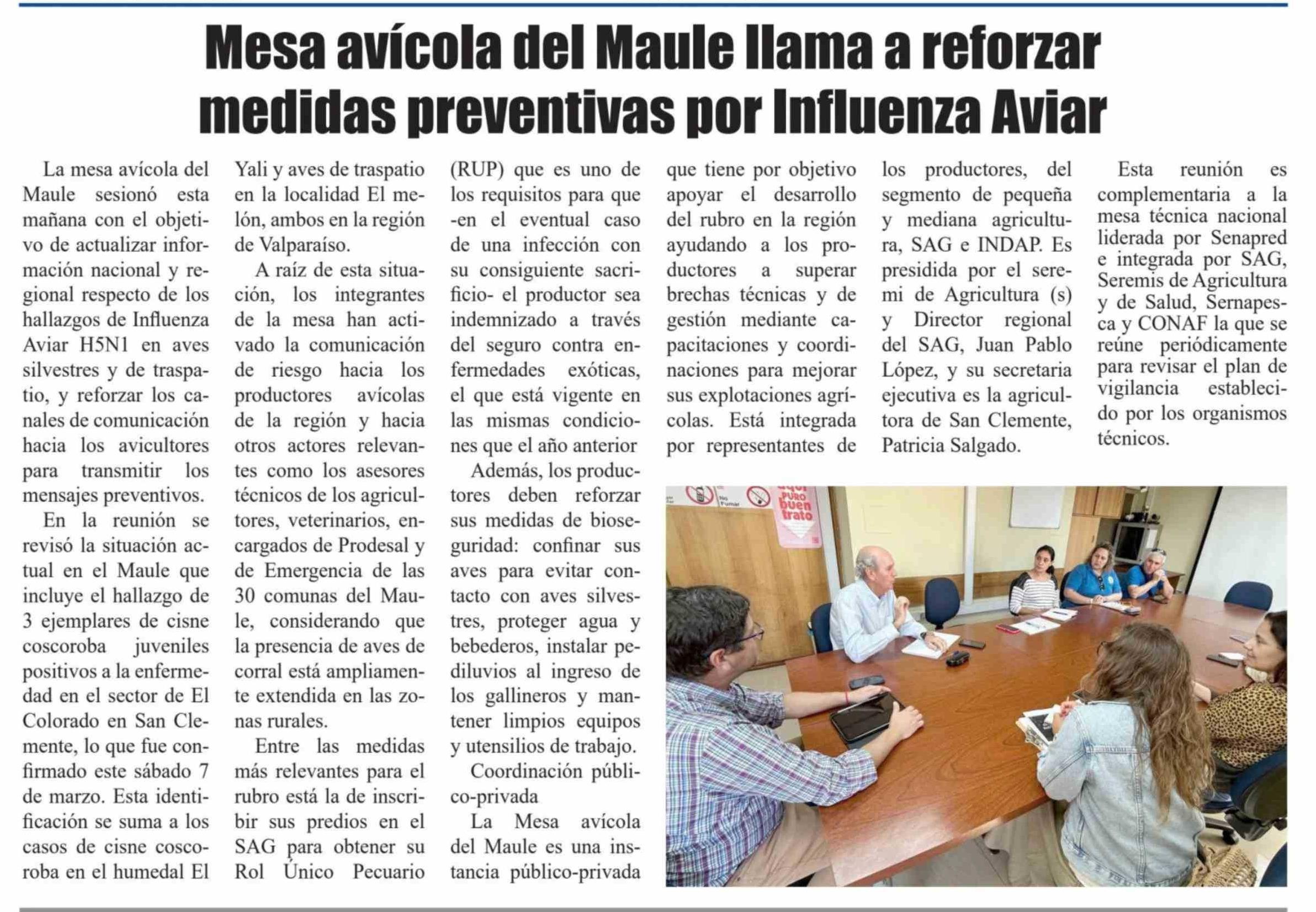 Mesa avícola del Maule llama a reforzar medidas preventivas por Influenza Aviar