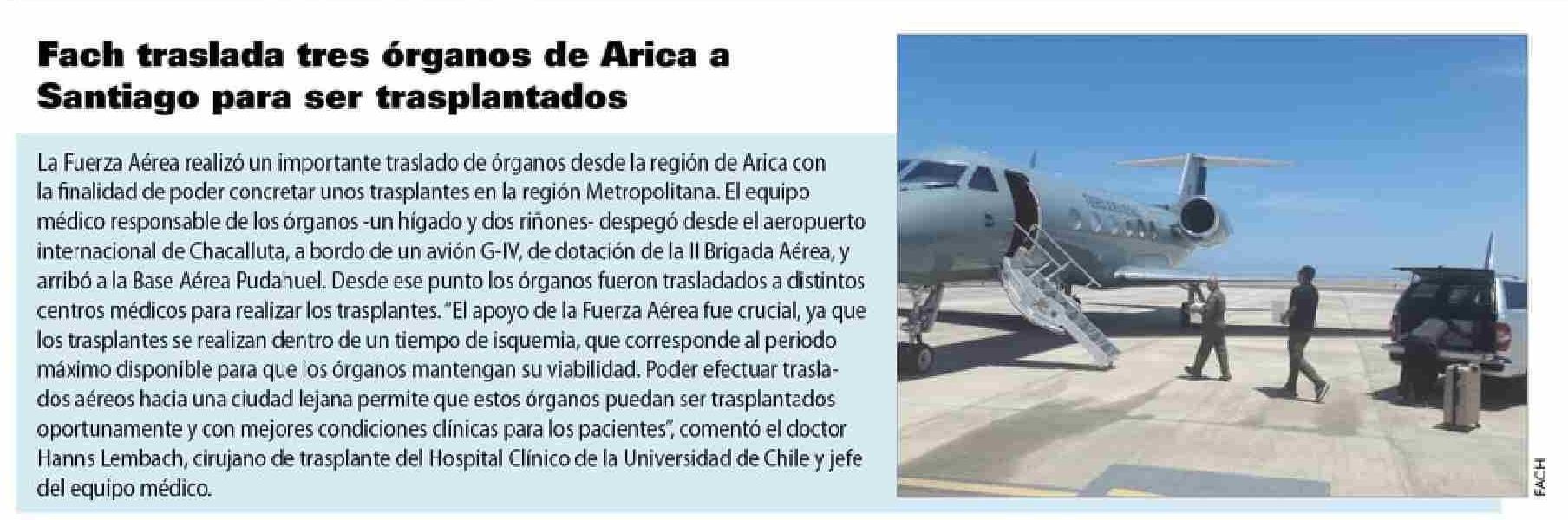 Fach traslada tres órganos de Arica a Santiago para ser trasplantados