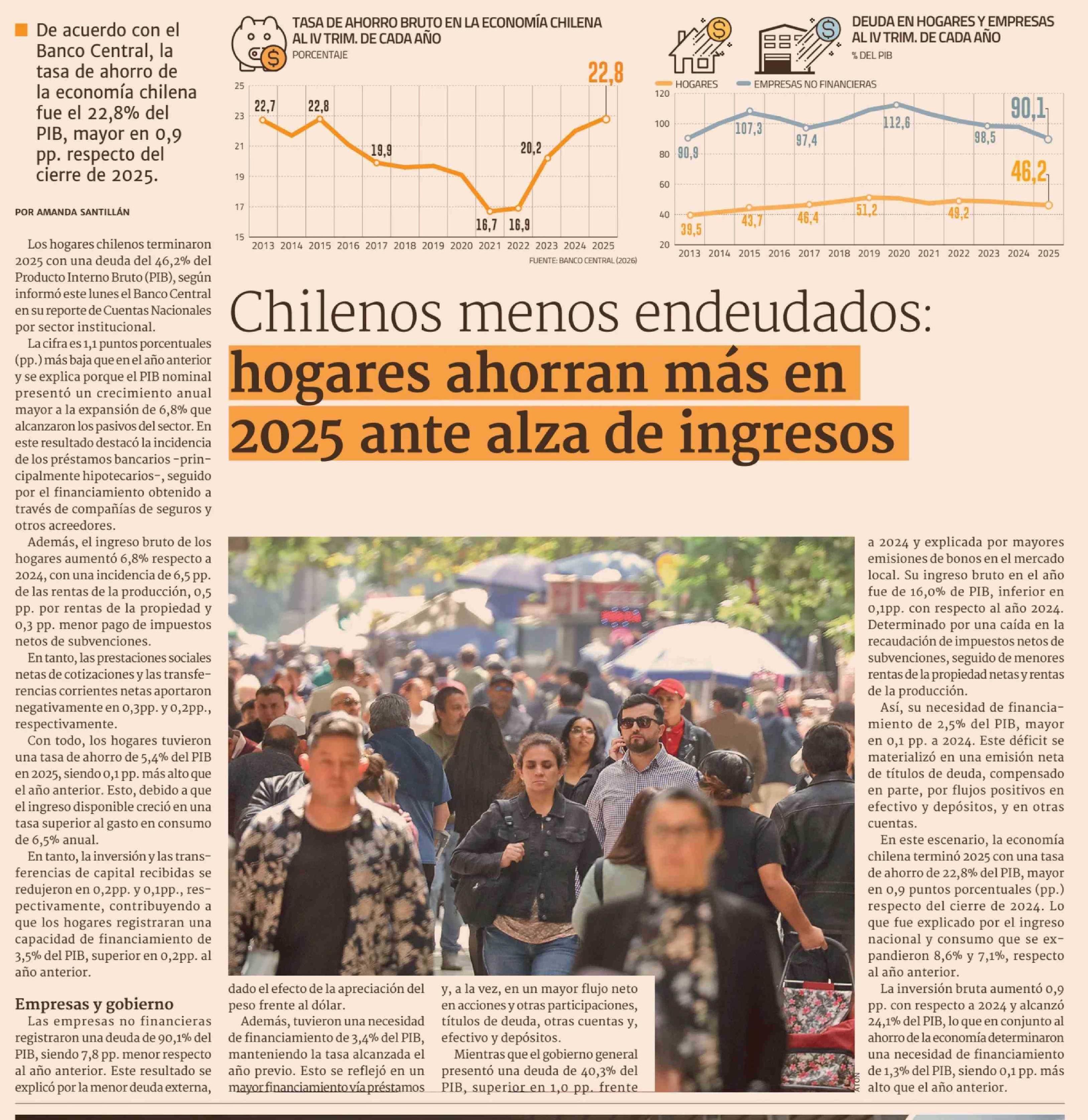Chilenos menos endeudados: hogares ahorran más en 2025 ante alza de ingresos