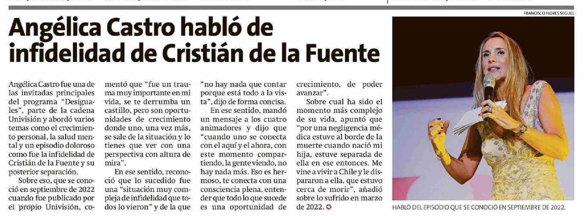 Angélica Castro habló de infidelidad de Cristián de la Fuente