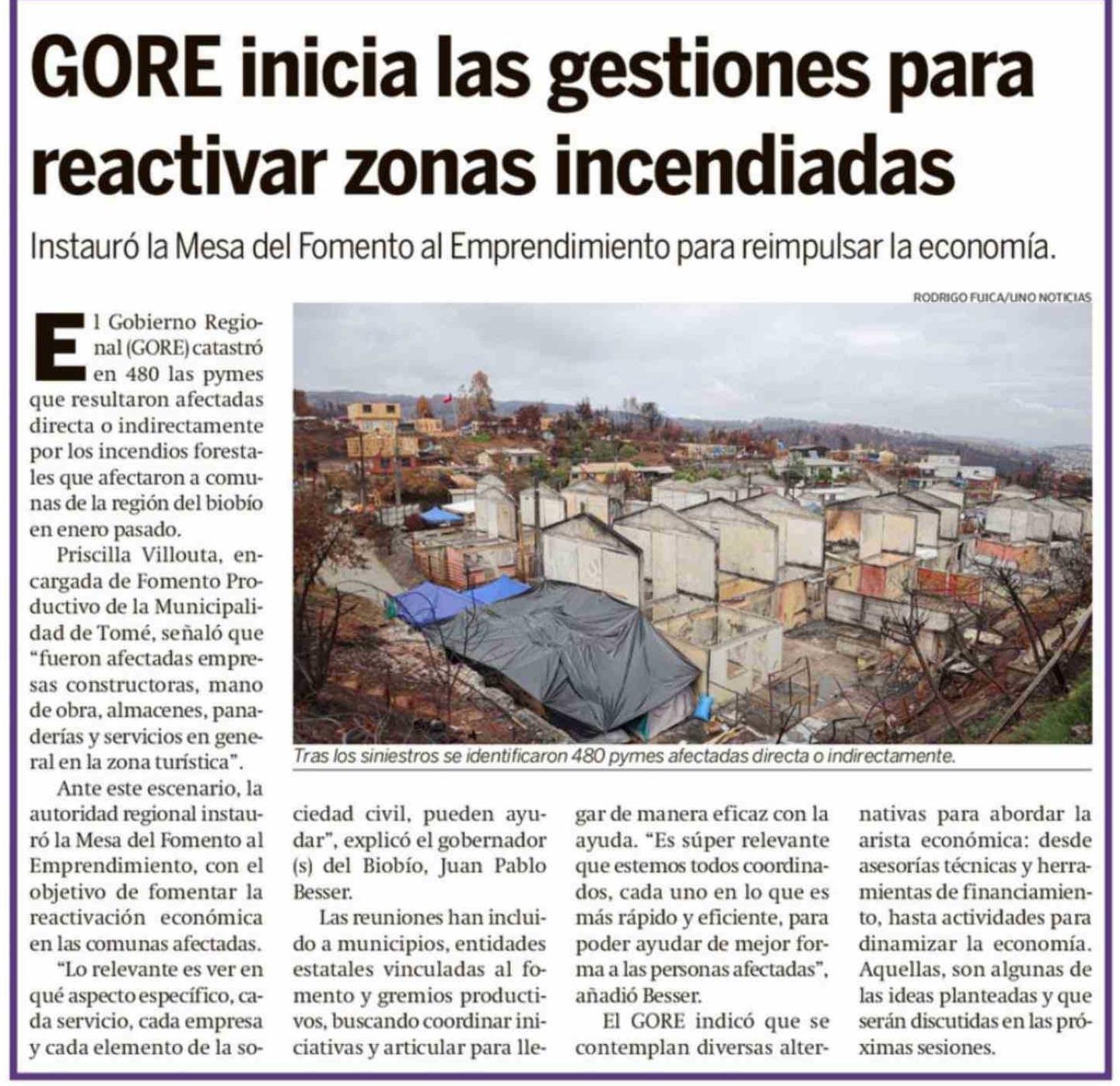 GORE inicia las gestiones para reactivar zonas incendiadas