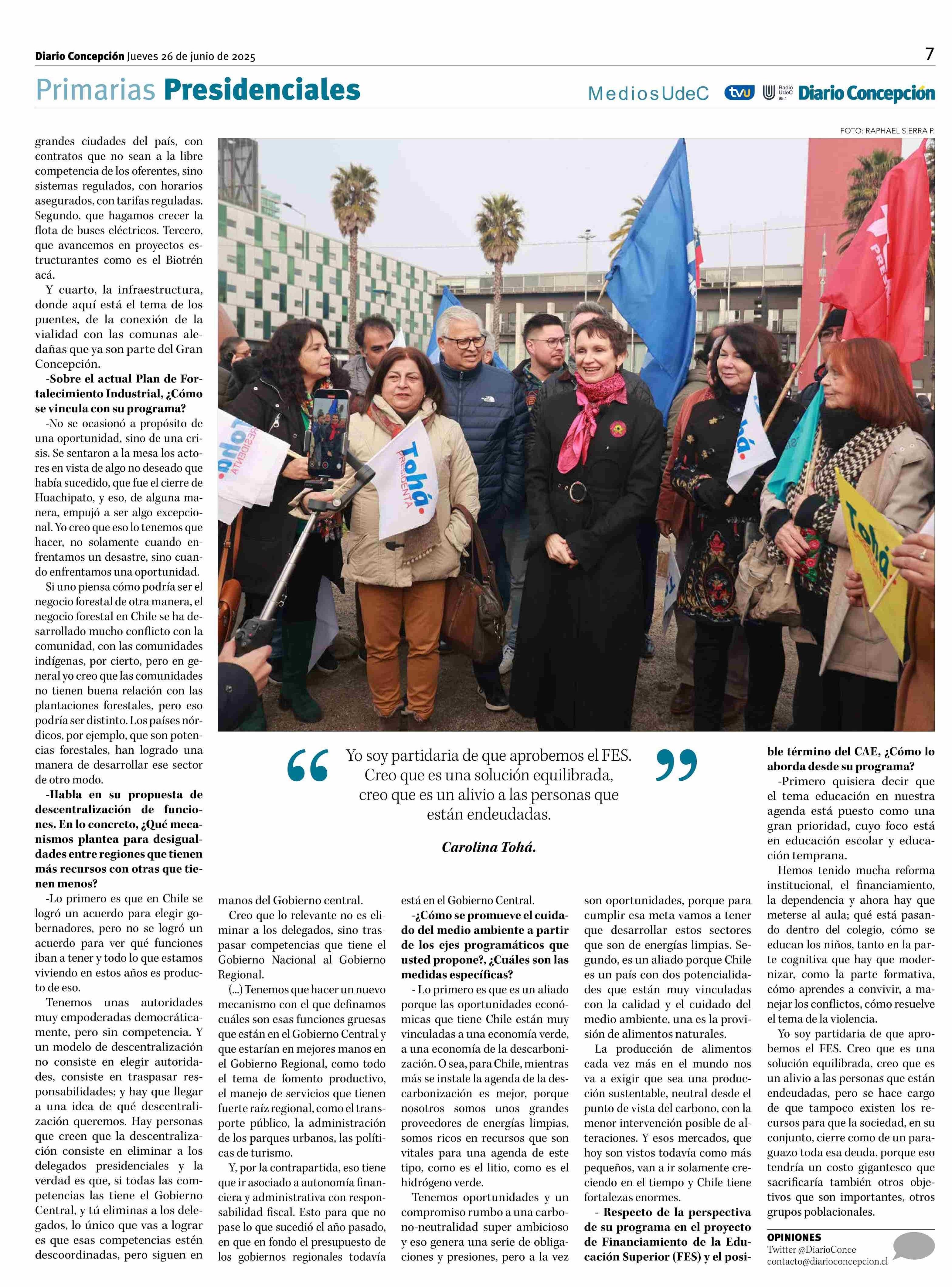 | Título: | “Lo relevante es traspasar competencias | que tiene el Gobierno Nacional al Gobierno Regional” Carolina Tohá, candidata del Socialismo Democrático |