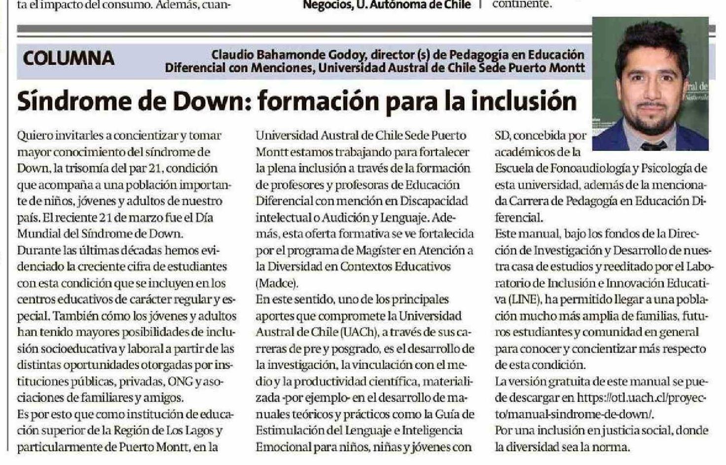 Columnas de Opinión: Sindrome de Down: formación para la inclusión