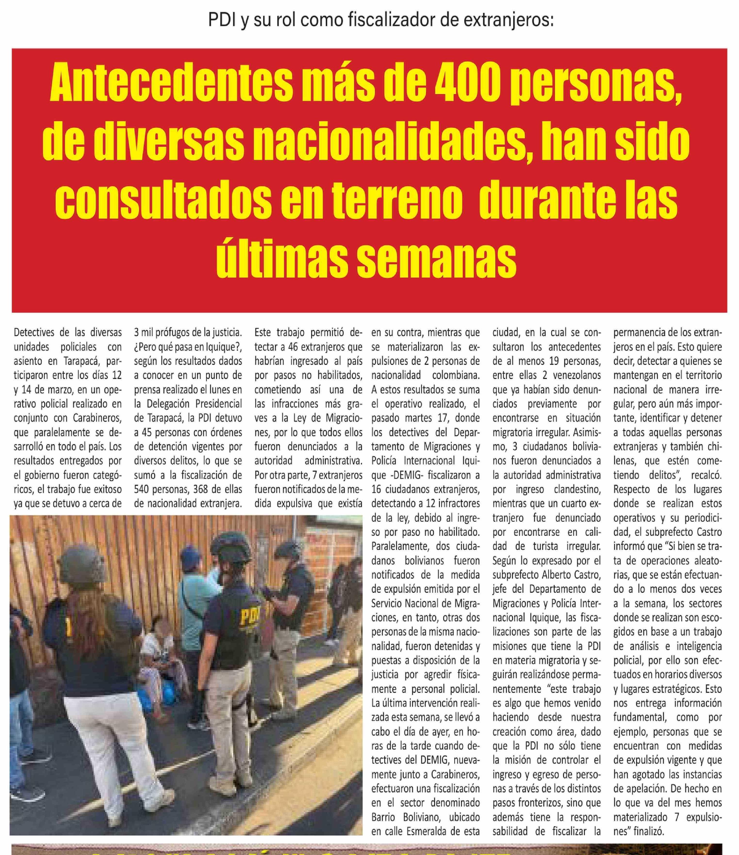 Antecedentes más de 400 personas, de diversas nacionalidades, han sido consultados en terreno durante las últimas semanas