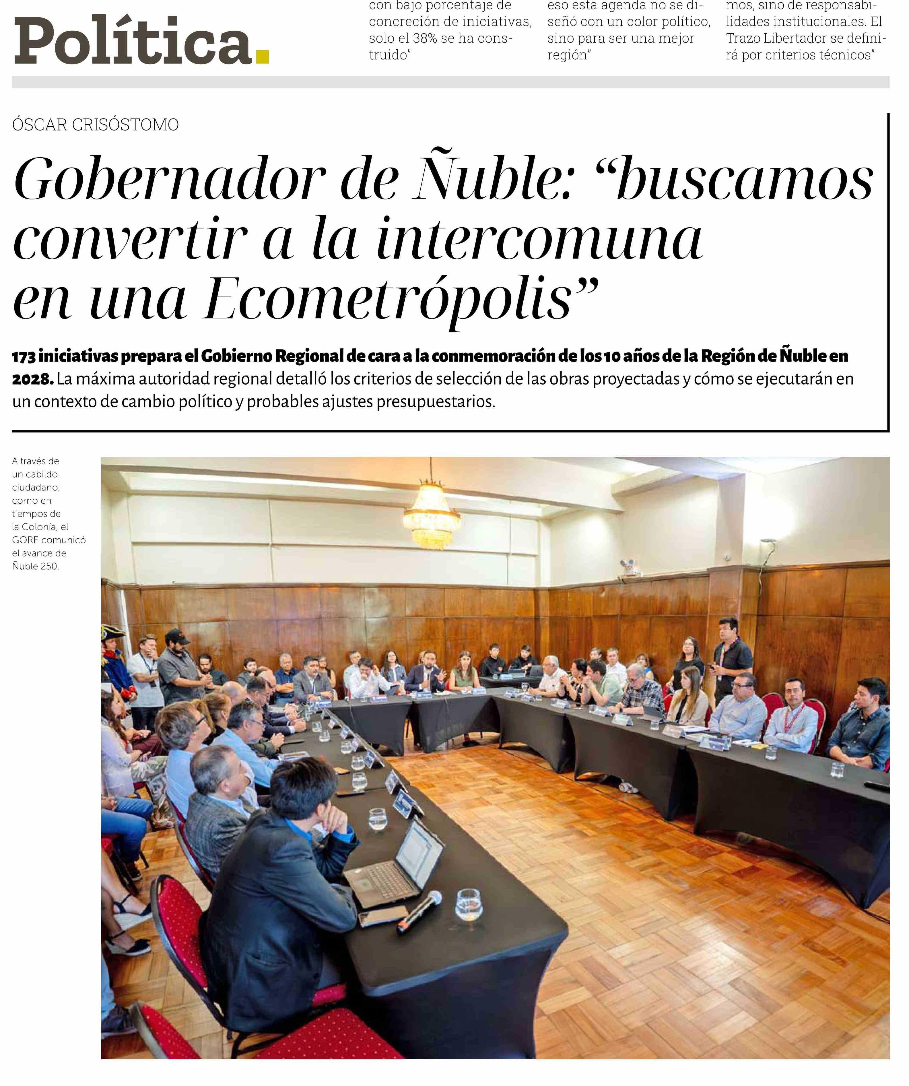 Gobernador de Ñuble: "buscamos convertir a la intercomuna en una Ecometrópolis"