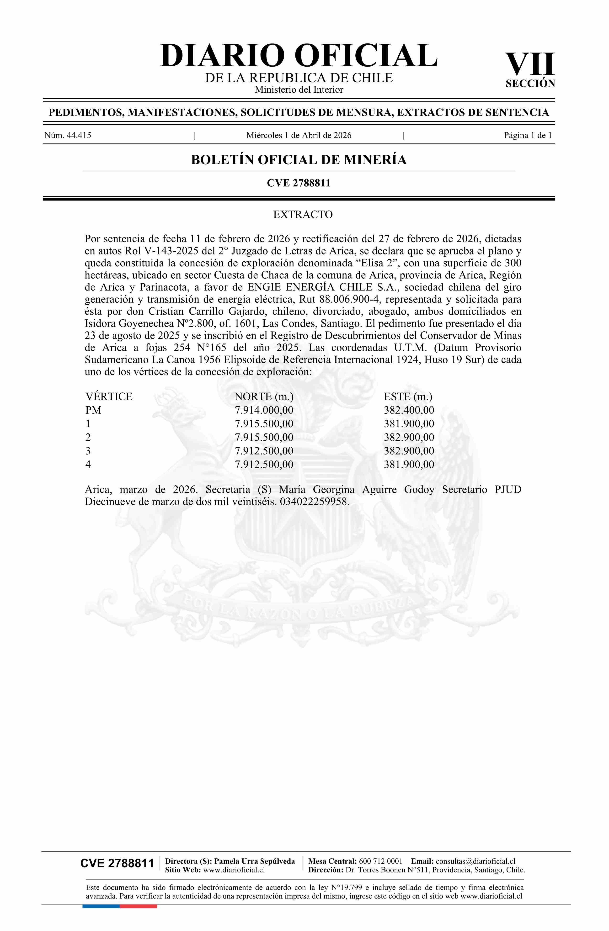 DIARIO OFICIAL CHILE - BOLETÍN OFICIAL DE MINERÍA (DIARIO OFICIAL CHILE – BOM – SENTENCIAS EXPLORA)