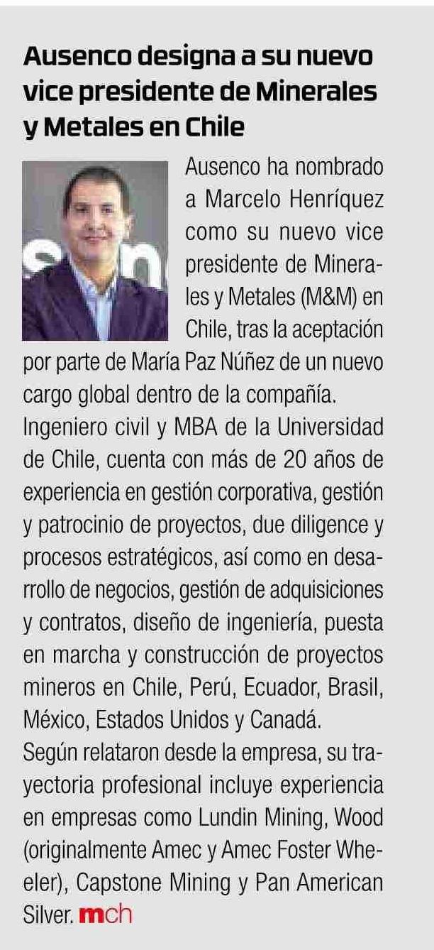 Ausenco designa a su nuevo vice presidente de Minerales y Metales en Chile