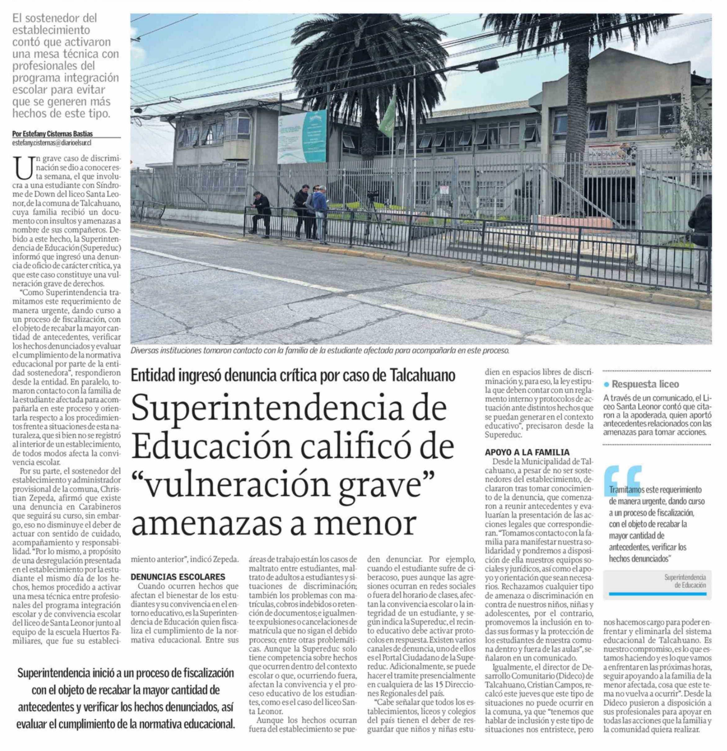 Superintendencia de Educación calificó de "vulneración grave" amenazas a menor