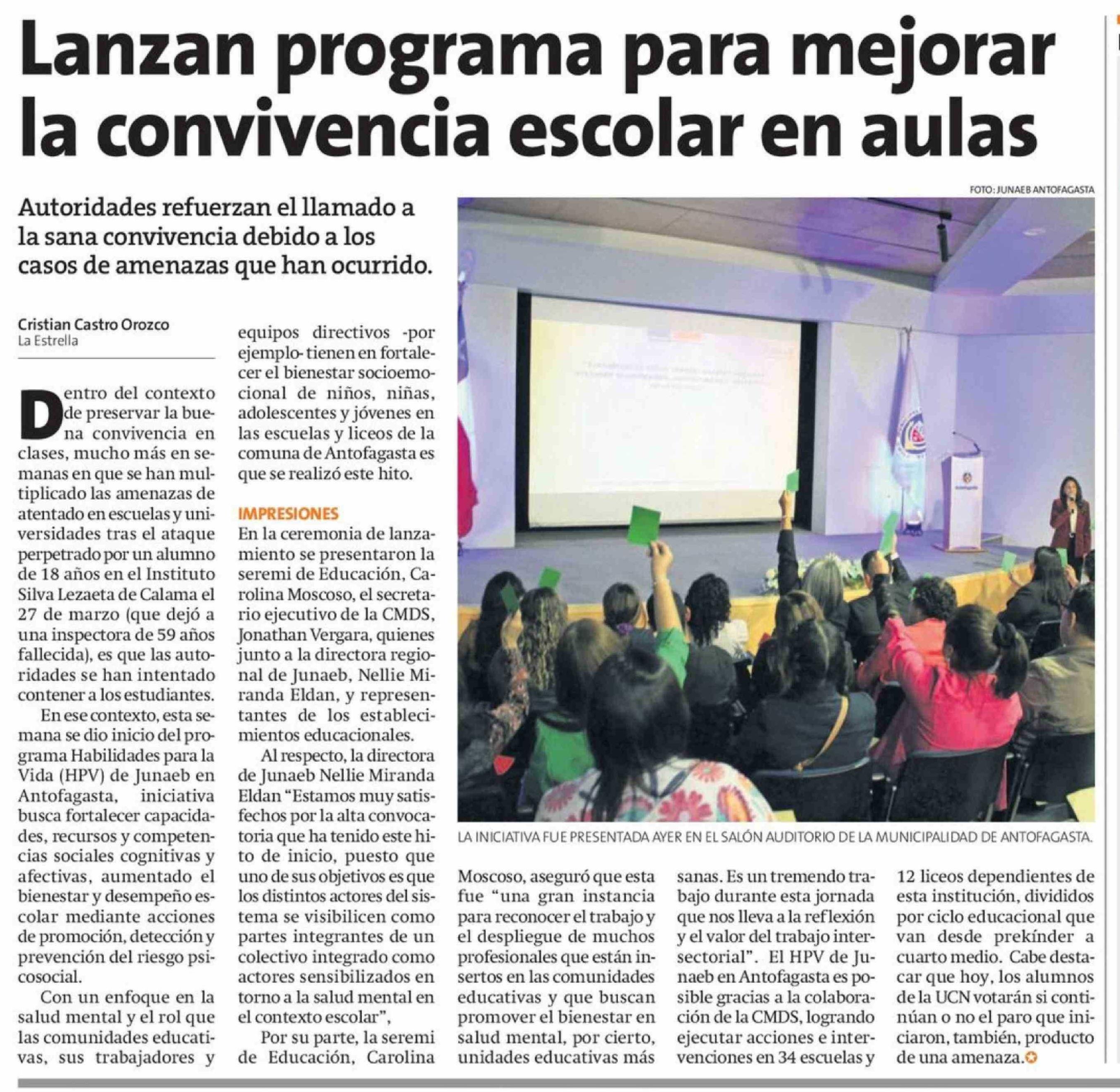 Título: Lanzan programa para mejorar la convivencia escolar en aulas