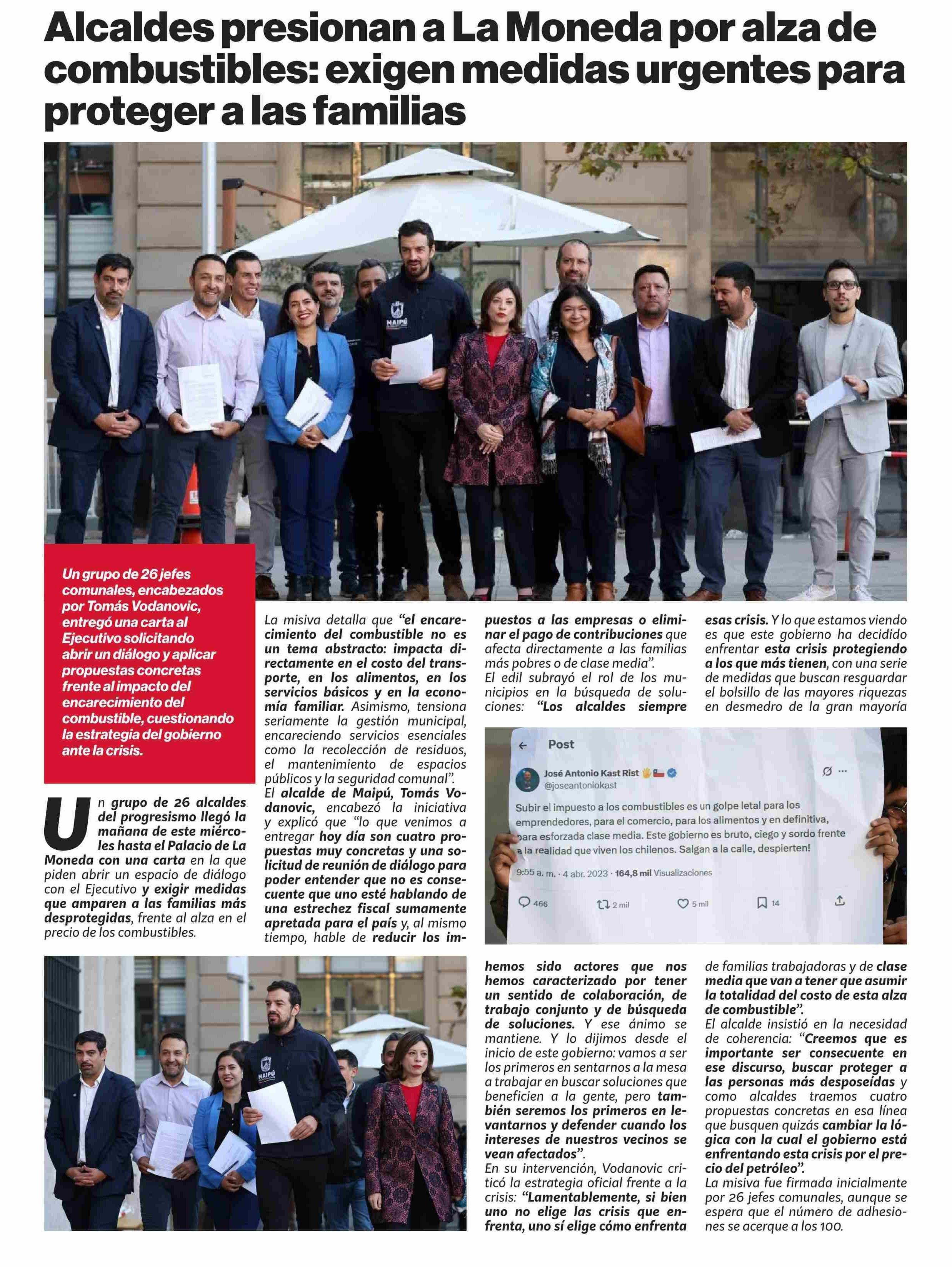 Alcaldes presionan a La Moneda por alza de combustibles: exigen medidas urgentes para proteger alas familias