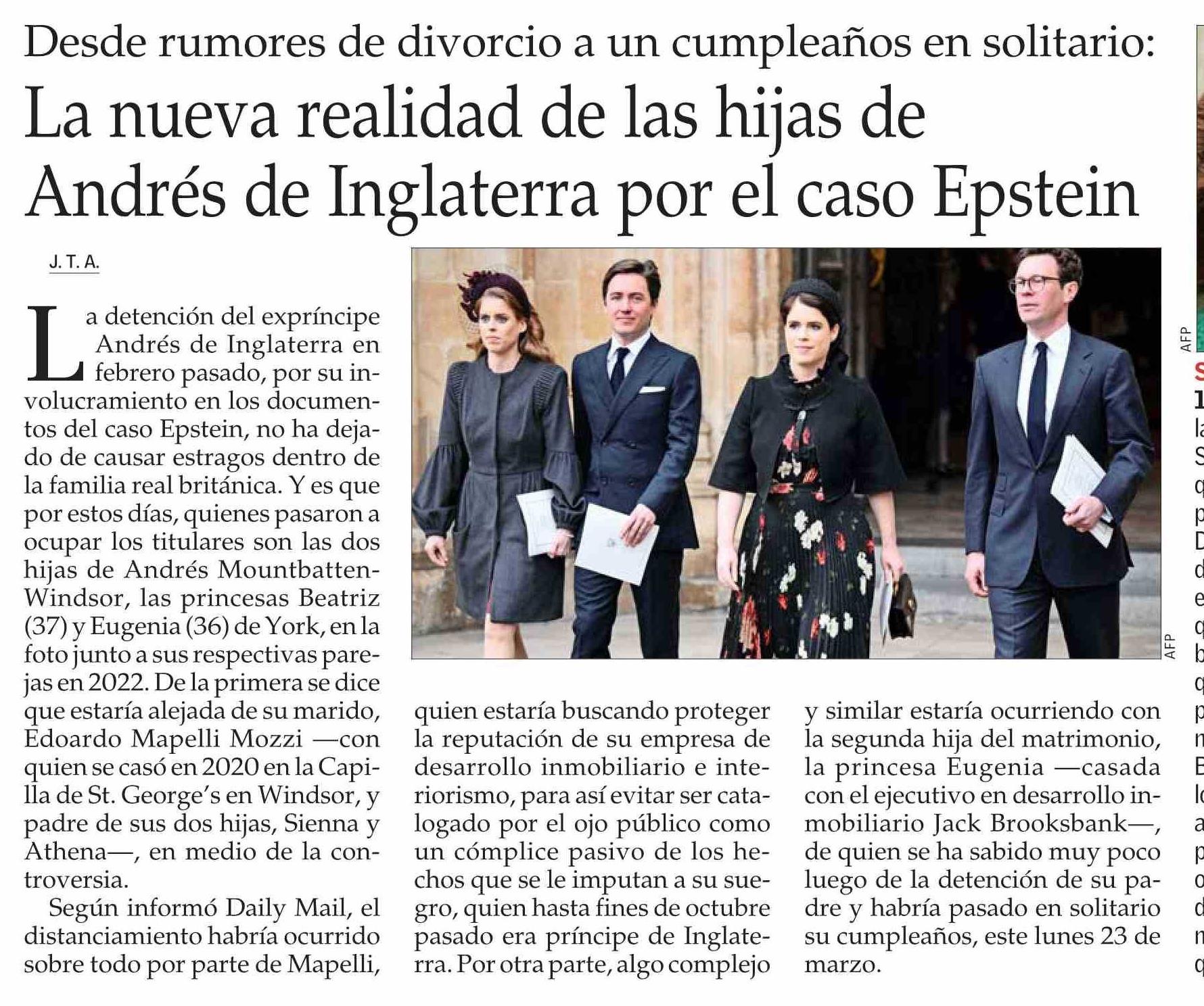 La nueva realidad de las hijas de Andrés de Inglaterra por el caso Epstein