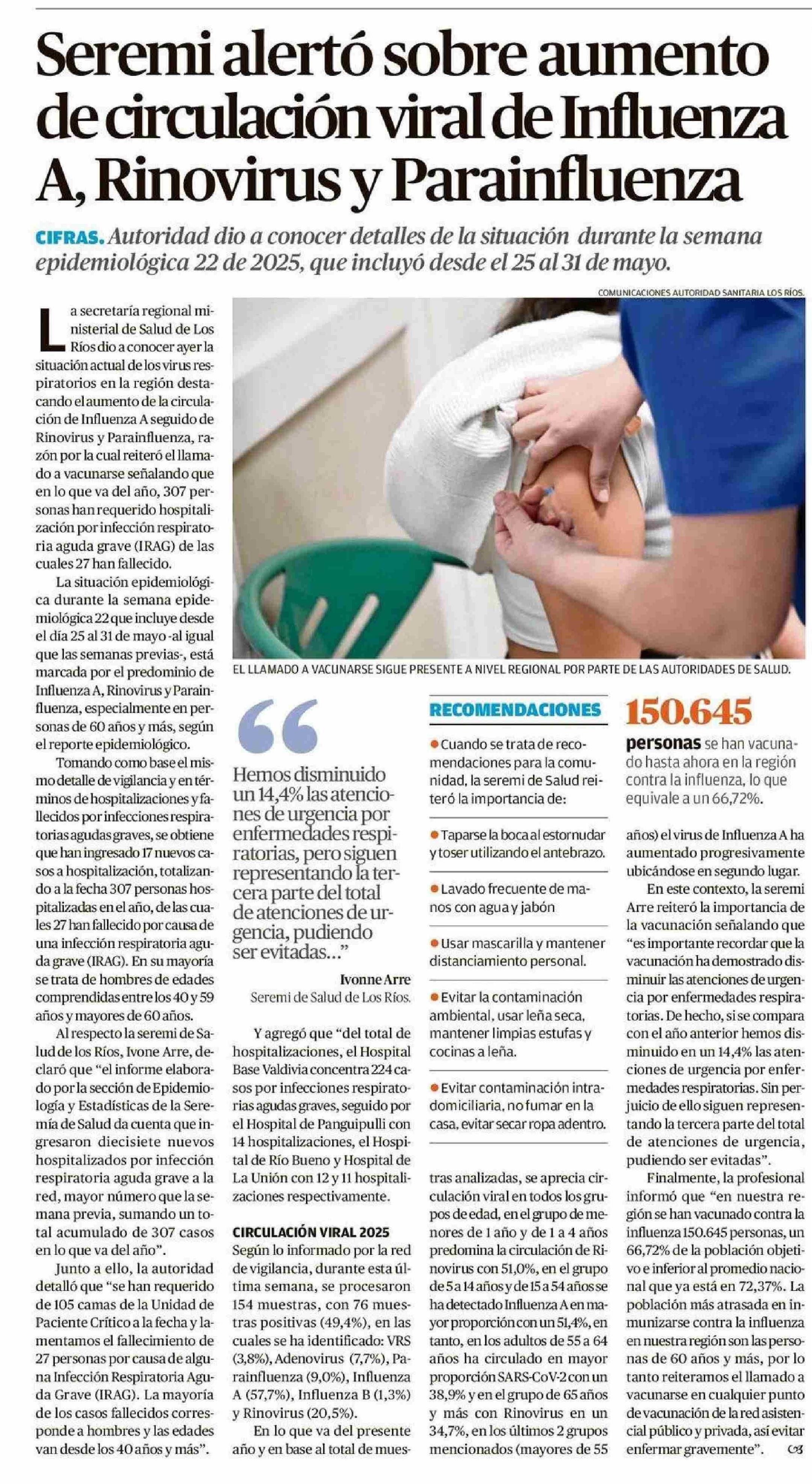 Seremi alertó sobre aumento de circulación viral de Influenza