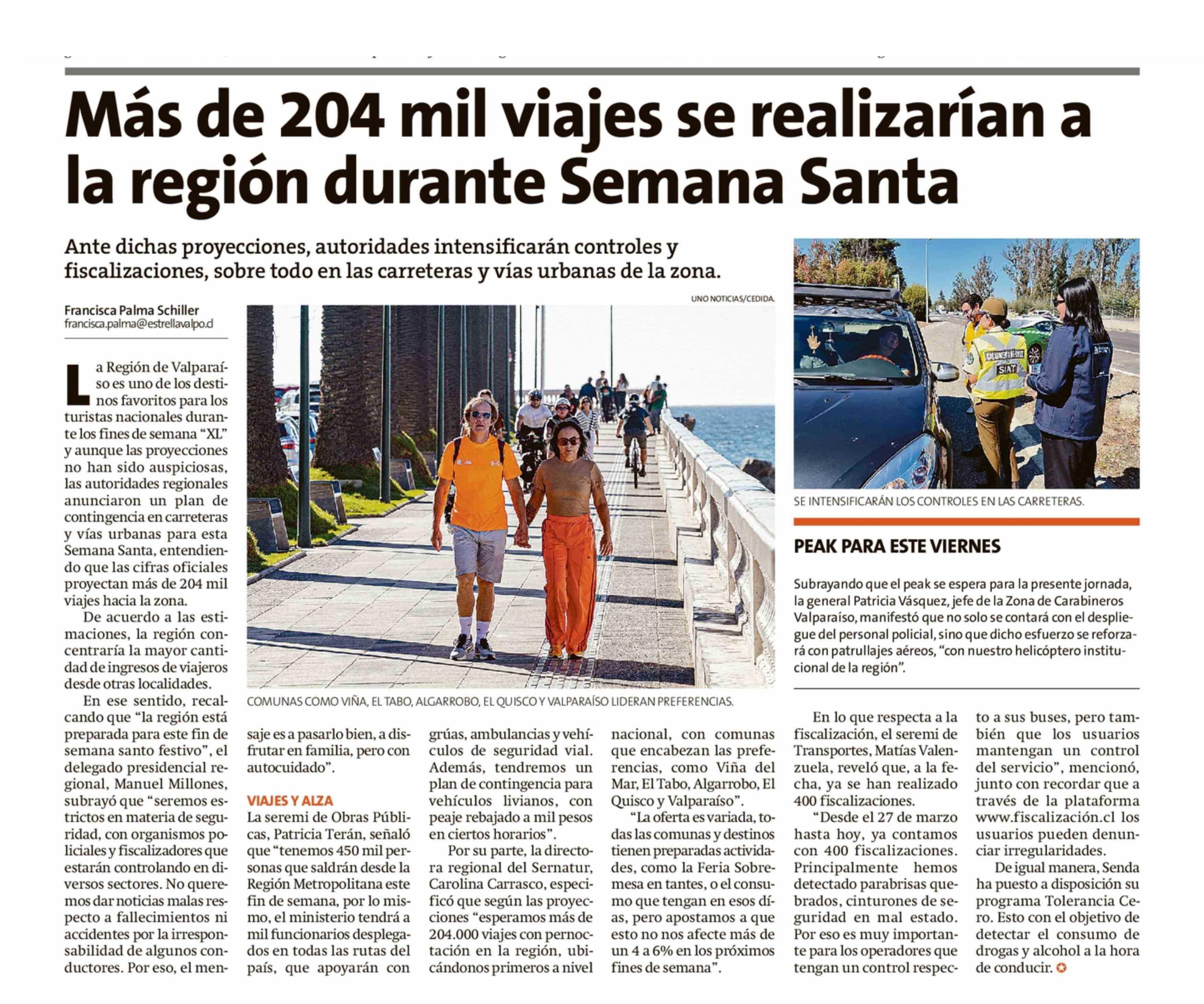 Más de 204 mil viajes se realizarían a la región durante Semana Santa