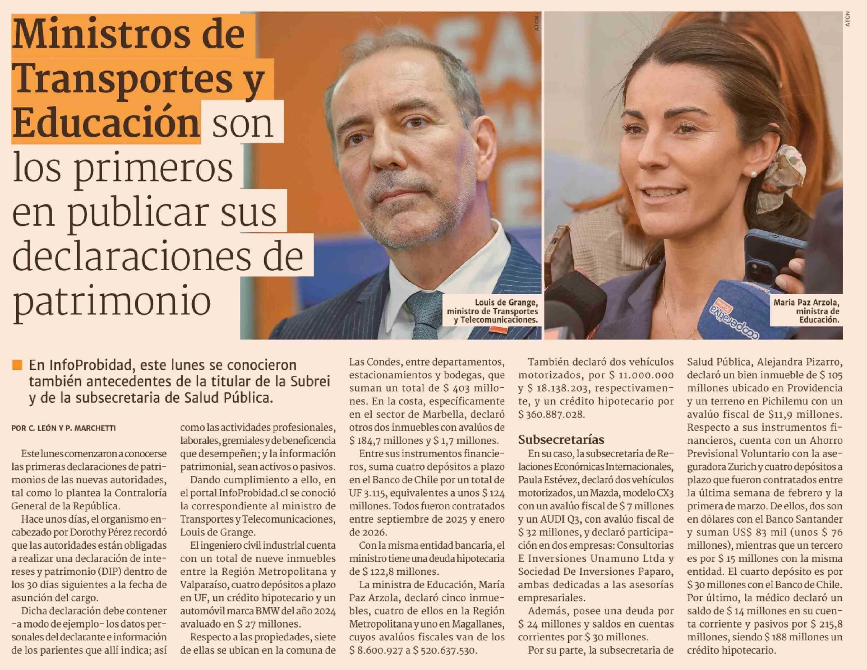 Ministros de Transportes y Educación son los primeros en publicar sus declaraciones de patrimonio