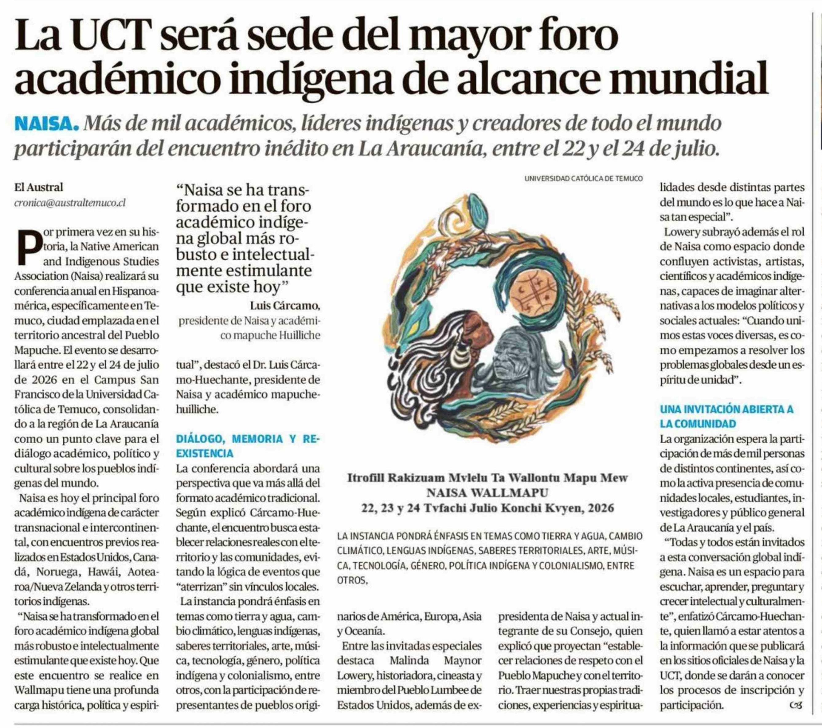 La UCT será sede del mayor foro académico indígena de alcance mundial
