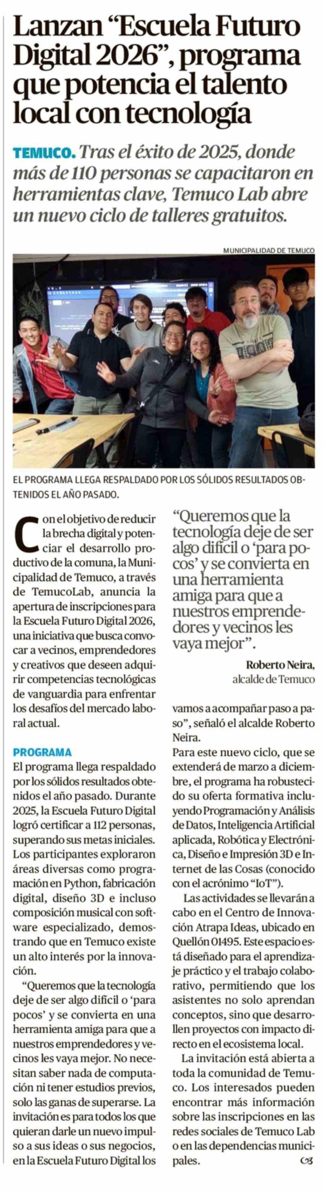 Lanzan "Escuela Futuro Digital 2026", programa que potencia el talento local con tecnología