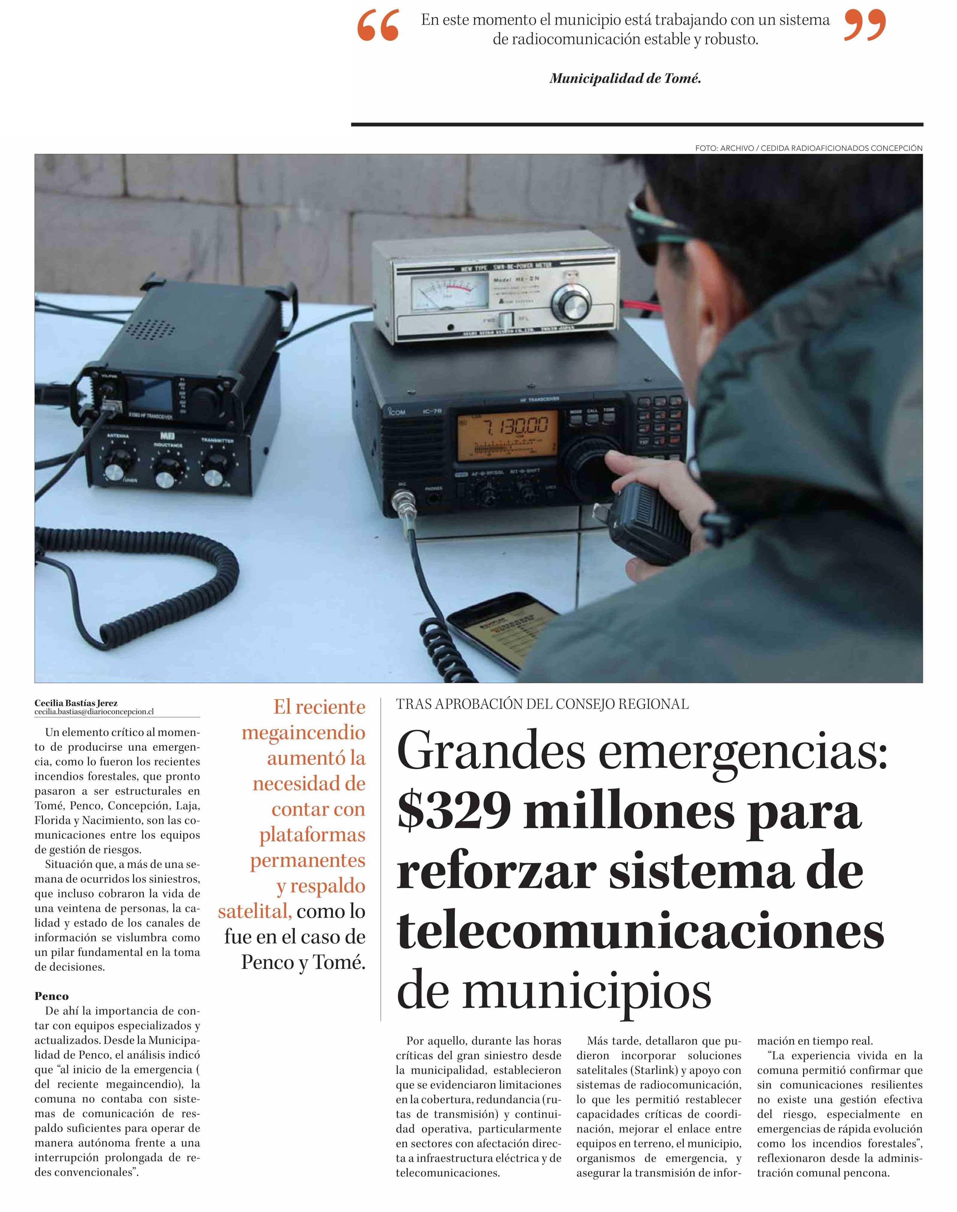 Grandes emergencias: $329 millones para reforzar sistema de telecomunicaciones de municipios