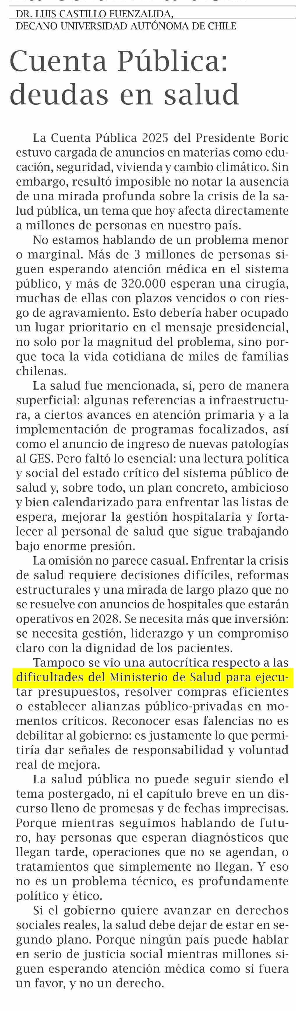 Columnas de Opinión: Cuenta Pública: deudas en salud