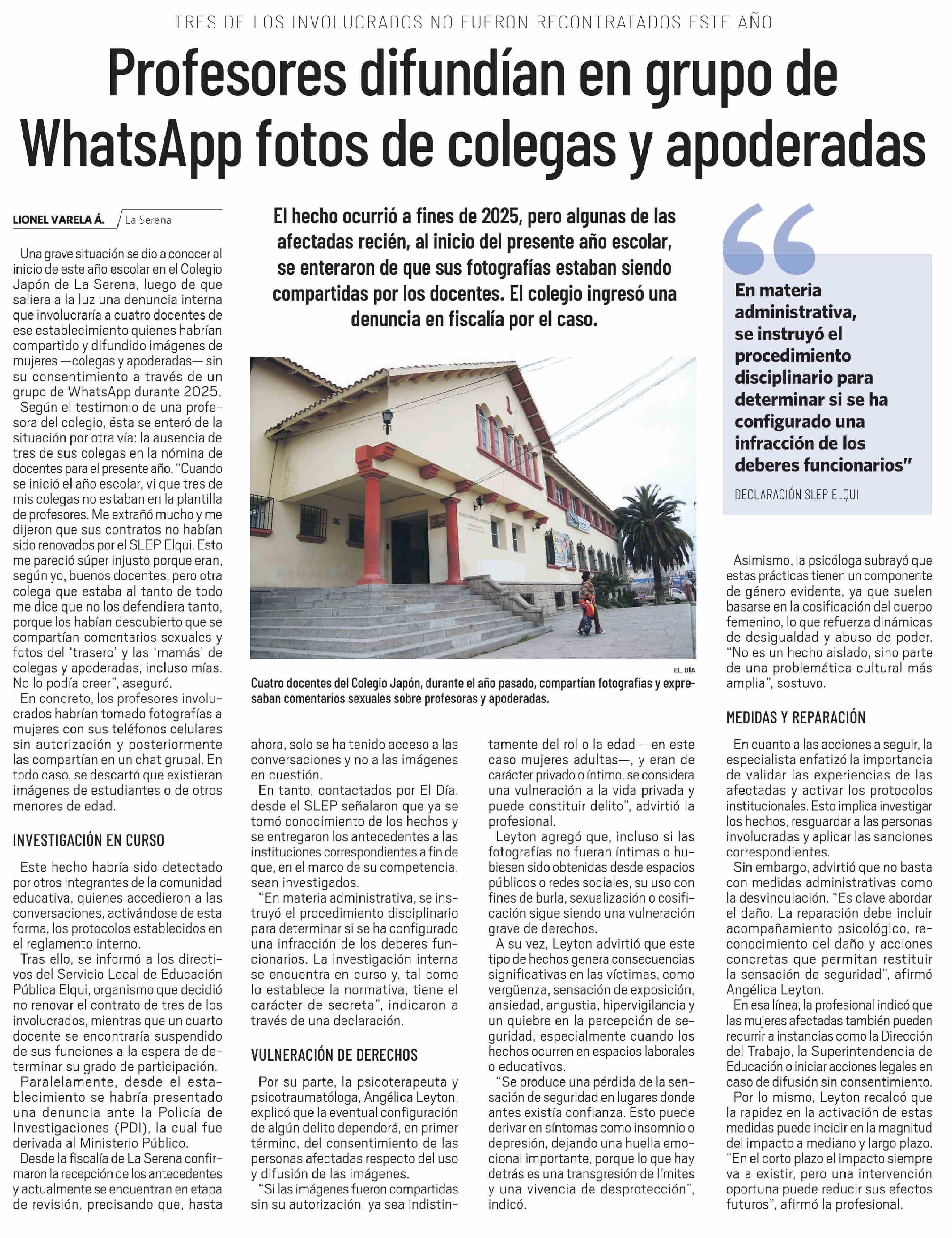 Profesores difundían en grupo de WhatsApp fotos de colegas y apoderadas