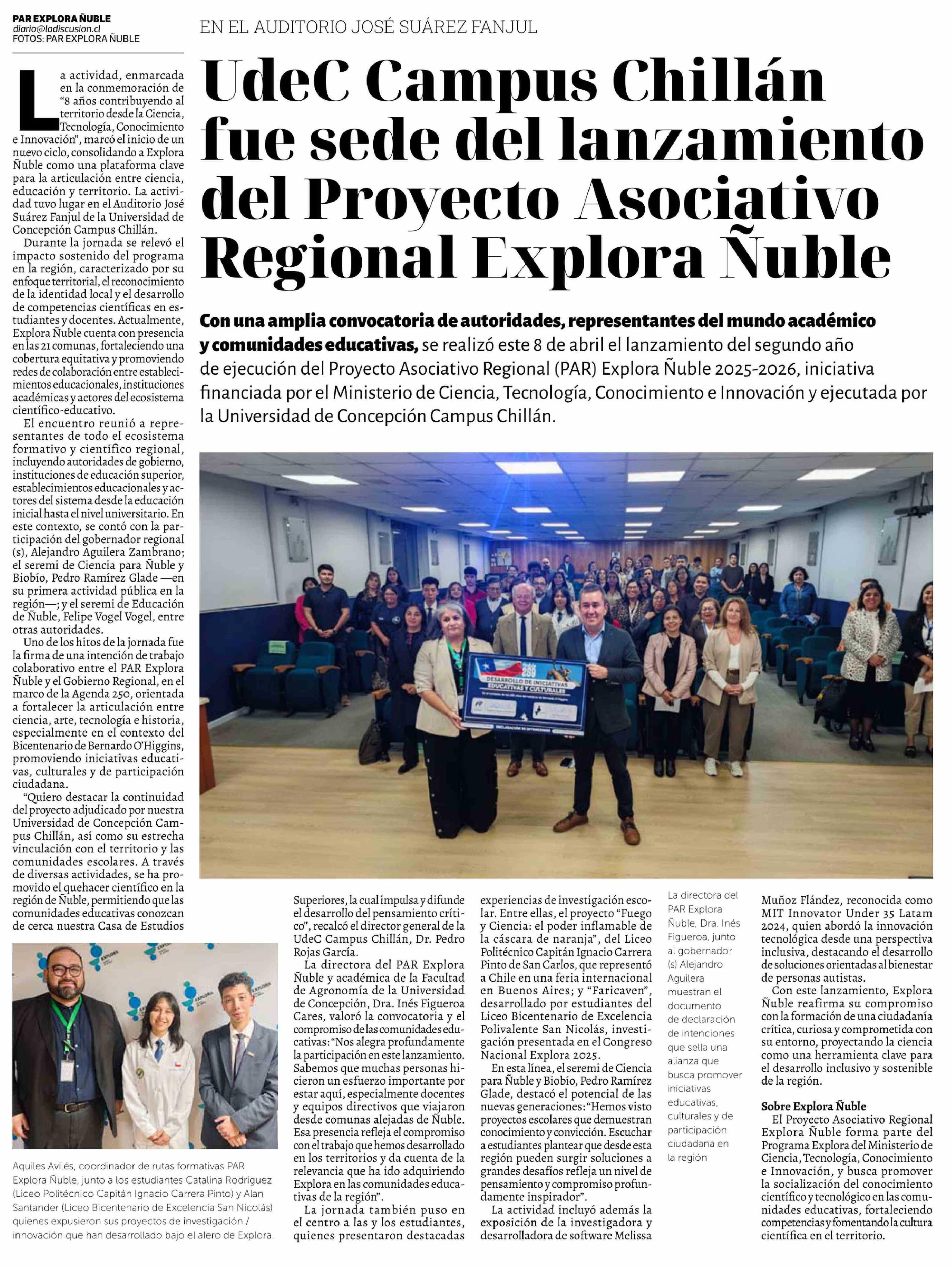 UdeC Campus Chillán fue sede del lanzamiento del Proyecto Asociativo Regional Explora Nuble