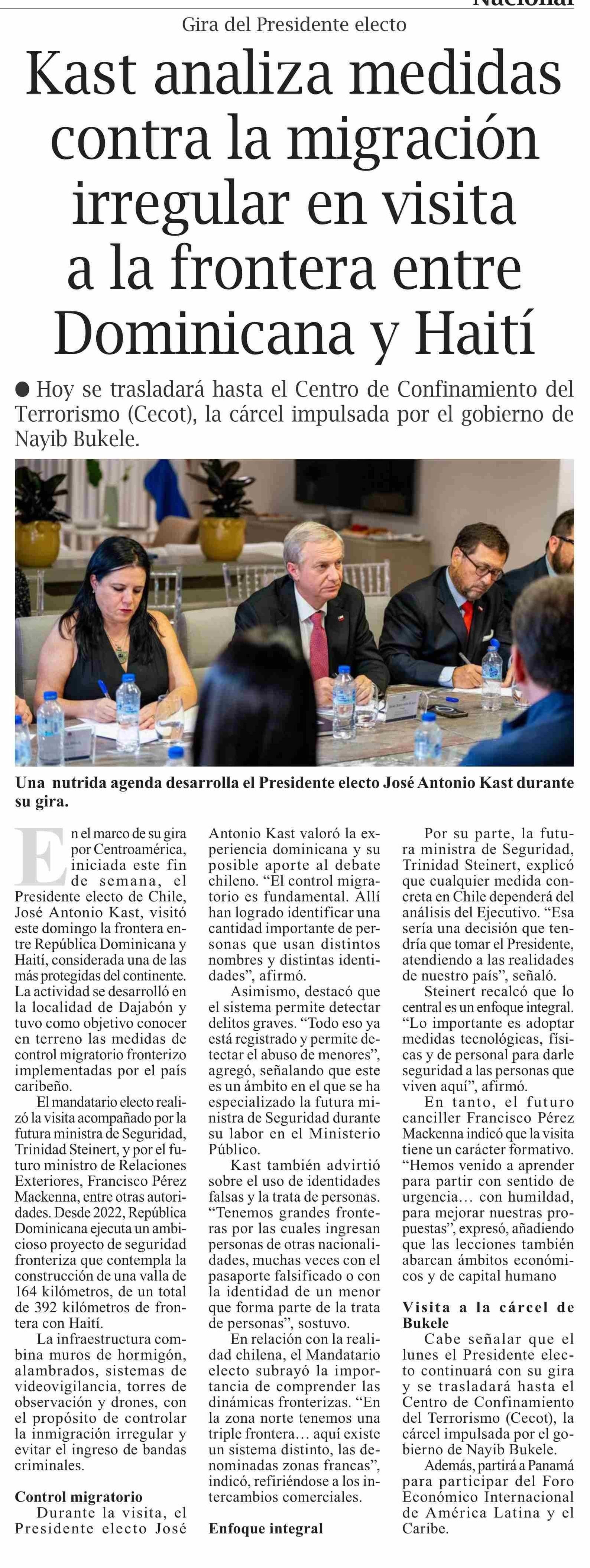 Kast analiza medidas contra la migración irregular en visita a la frontera entre Dominicana y Haití