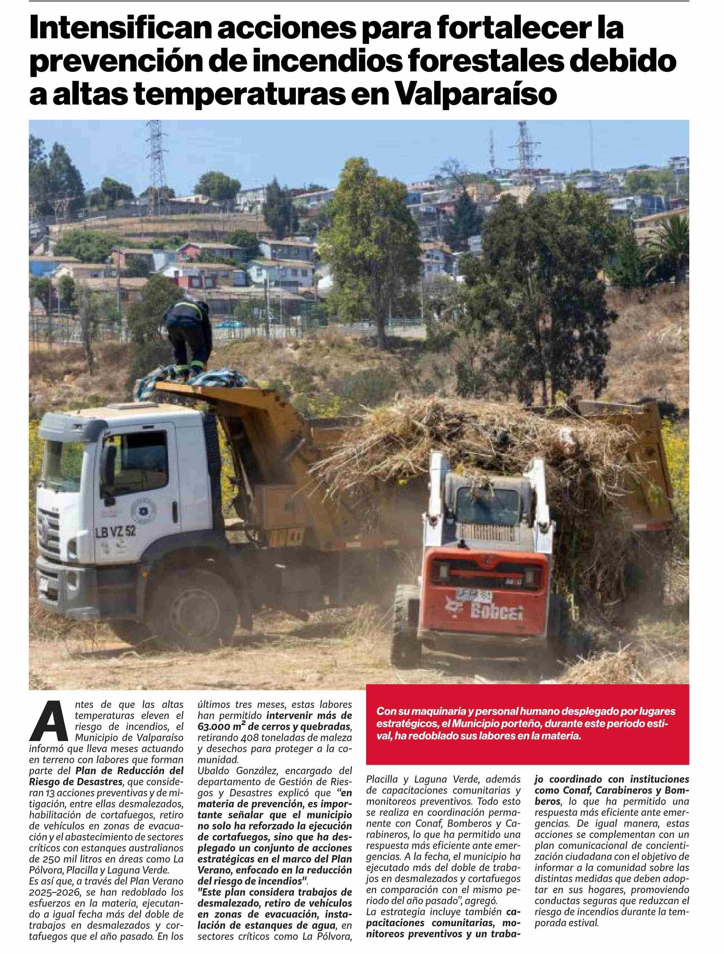 Intensifican acciones para fortalecer la prevención de incendios forestales debido a altas temperaturas en Valparaíso