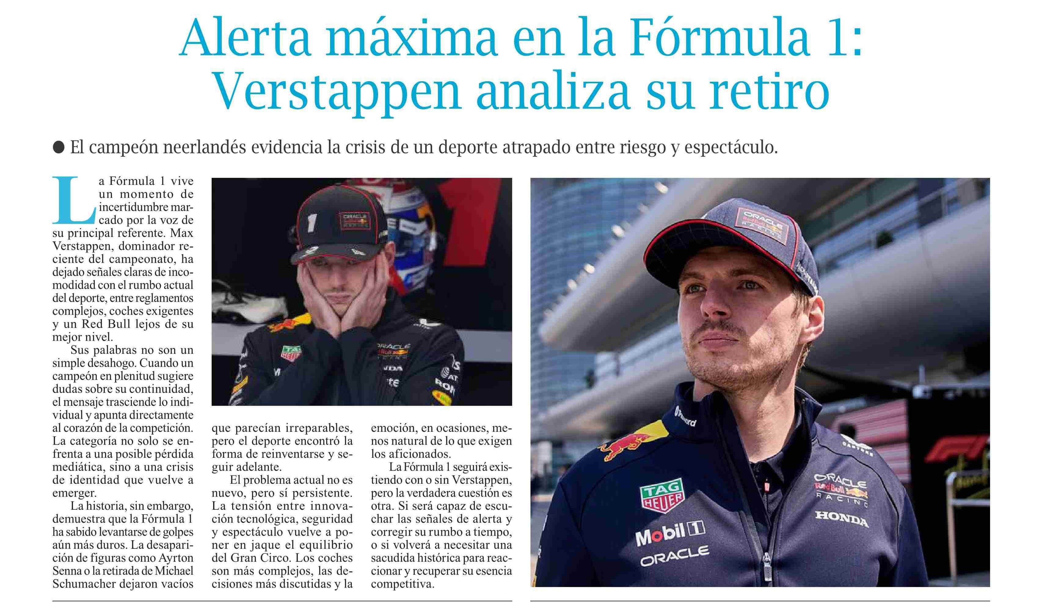Alerta máxima en la Fórmula 1: Verstappen analiza su retiro