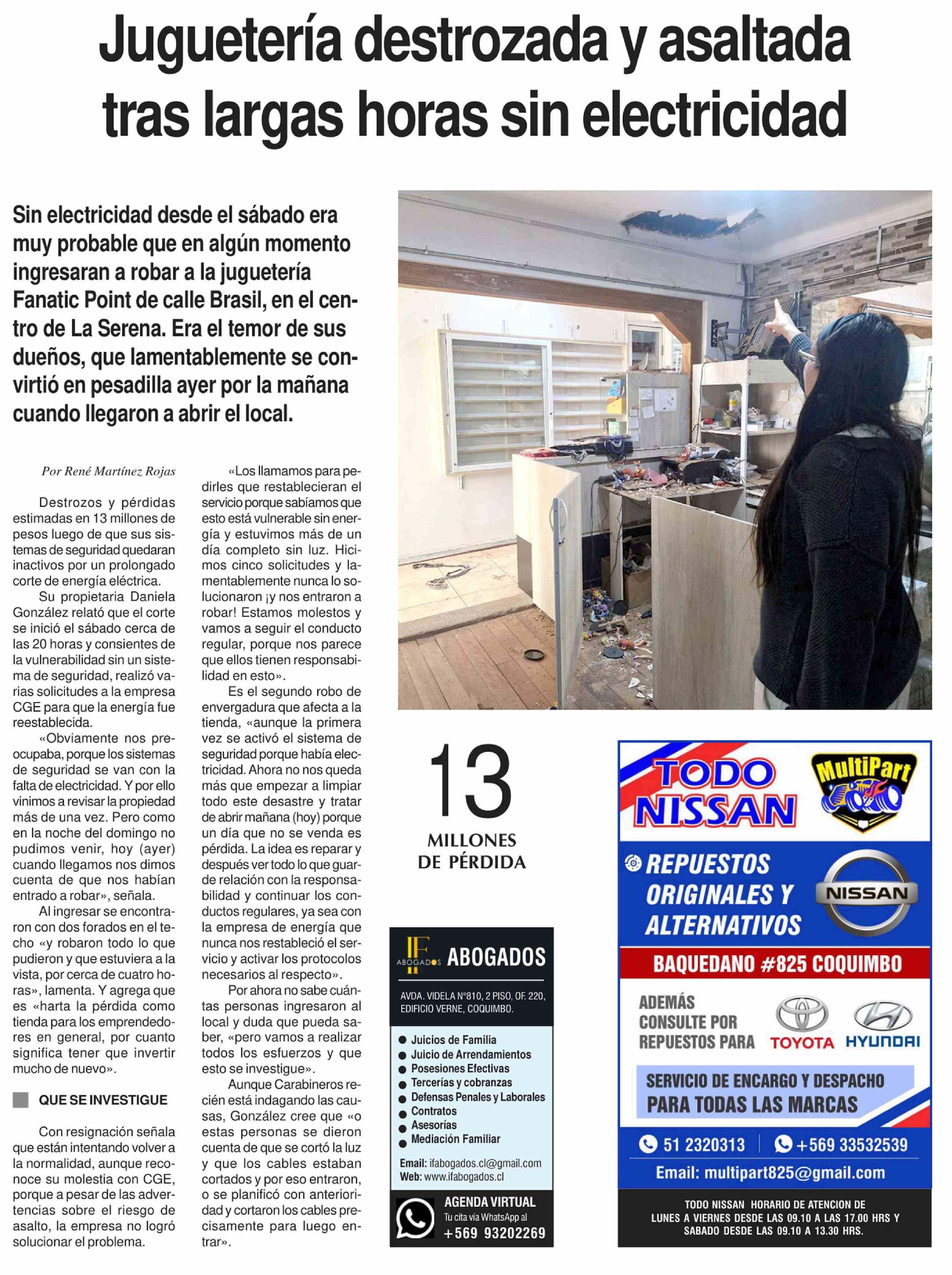 Juguetería destrozada y asaltada tras largas horas sin electricidad