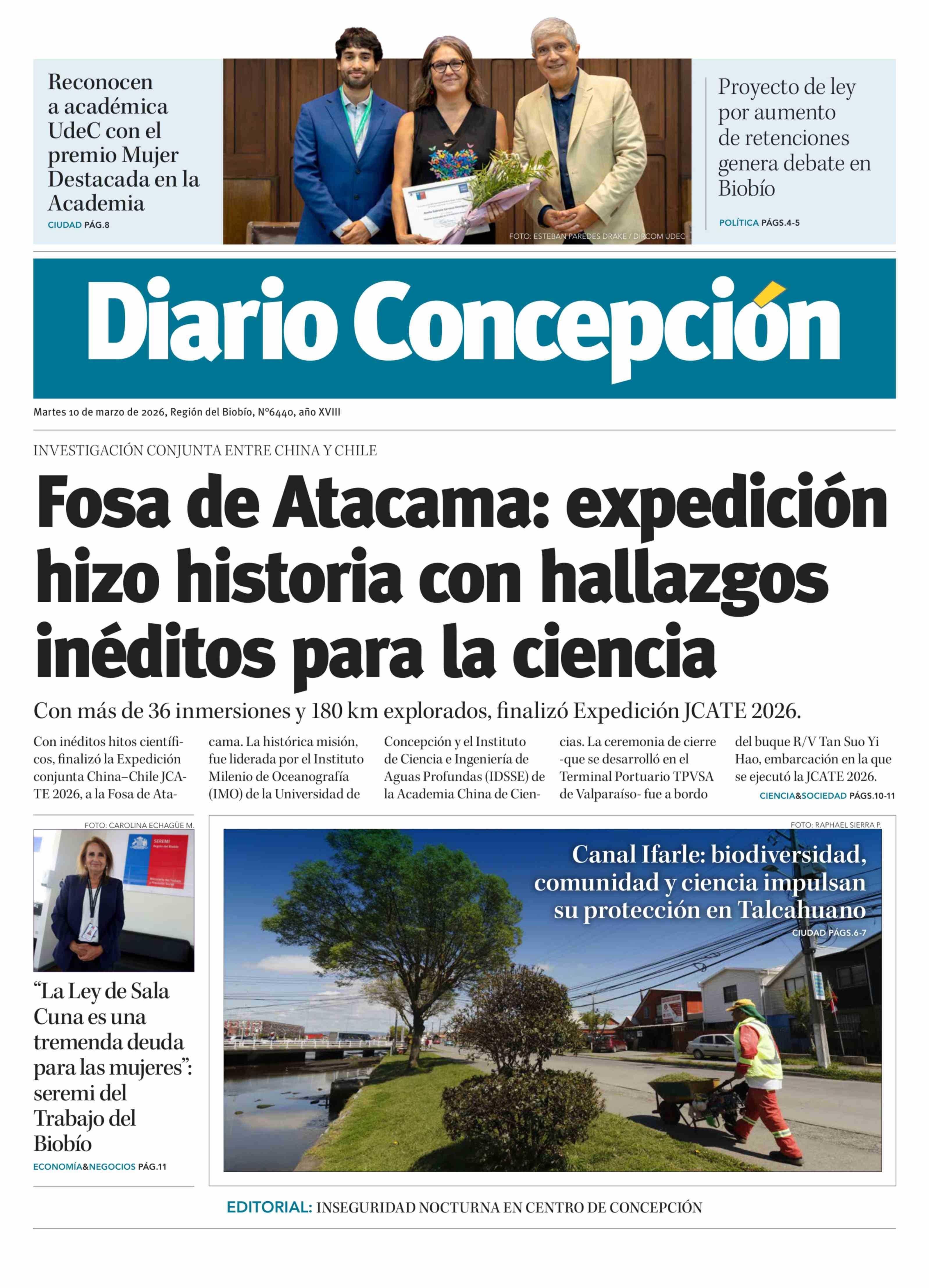 PORTADA DIARIO CONCEPCIÓN CHILE
