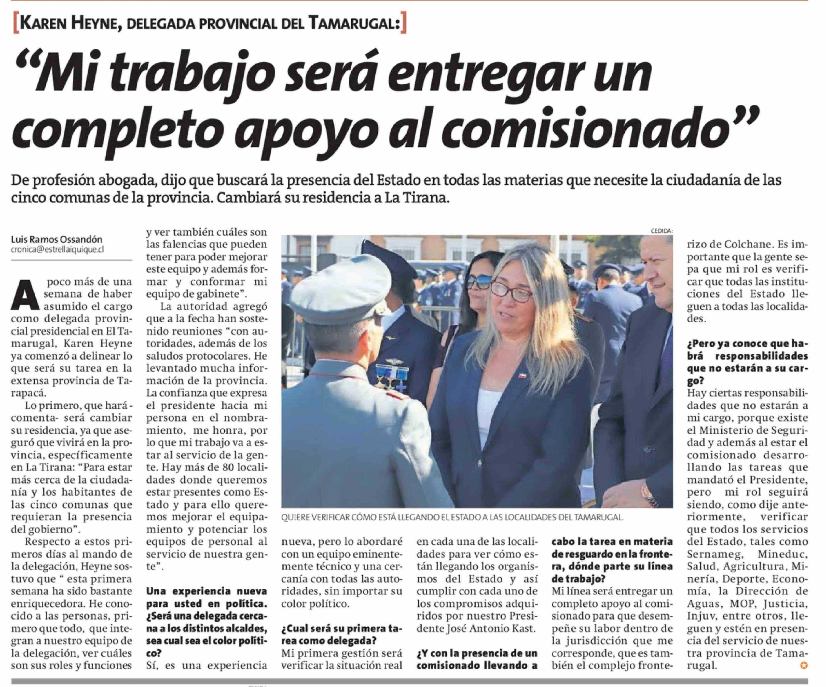 "Mi trabajo será entregar un completo apoyo al comisionado"